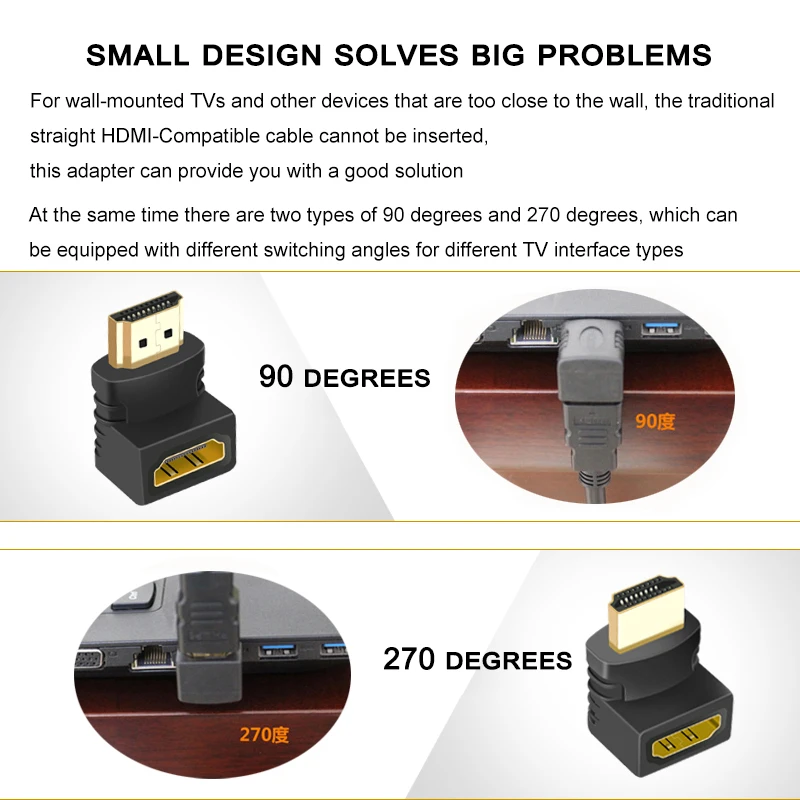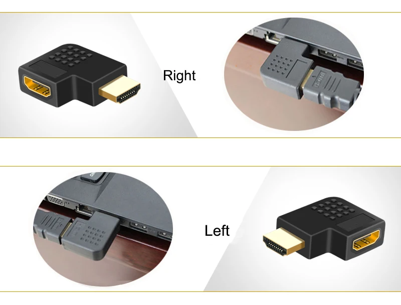 Adaptador compatible con HDMI divisor macho a hembra 90 270 grados convertidor derecho izquierdo extensor para PS4 HDTV adaptador de Monitor de ordenador portátil