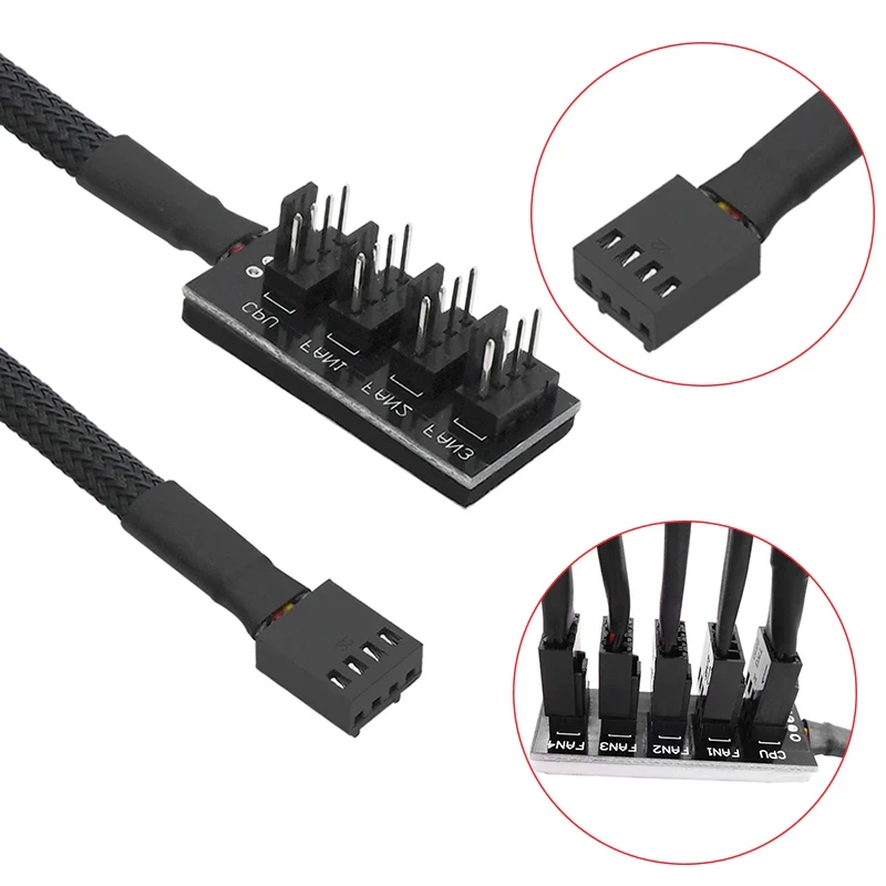 Comprar UVOOI-concentrador de ventilador PWM de 1 a 5 vías, 4 pines, 4 pines, 3 pines, Cable de alimentación, divisor, Cable de ventilador para ordenador de escritorio