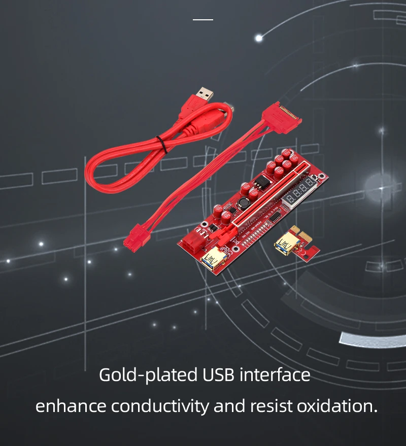 V013 Pro GPU Riser PCIE Riser para minería Bitcoin Miner para tarjeta de vídeo Riser 013 Pro PCI Express X16 6 pines USB 3.0 LED Temperatura