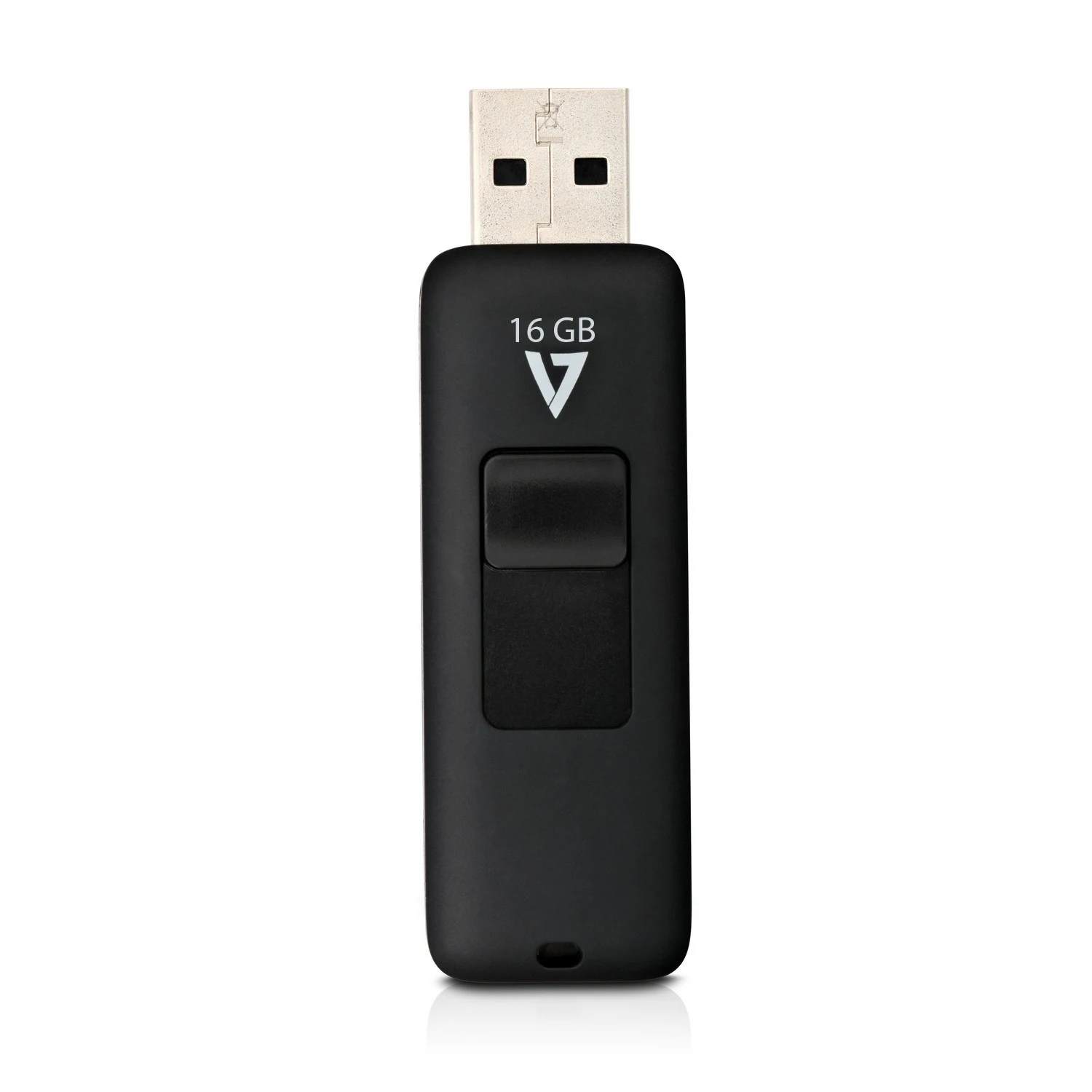 V7 VF216GAR-3E. Capacidad: 16 GB, Interfaz del dispositivo: USB tipo A, Versión USB: 2.0, Velocidad de lectura: 15 MB/s, Velocidad de escritura: 5 MB/s. Factor de forma: Deslizar. Peso: 8 g. Color del producto: Negro
