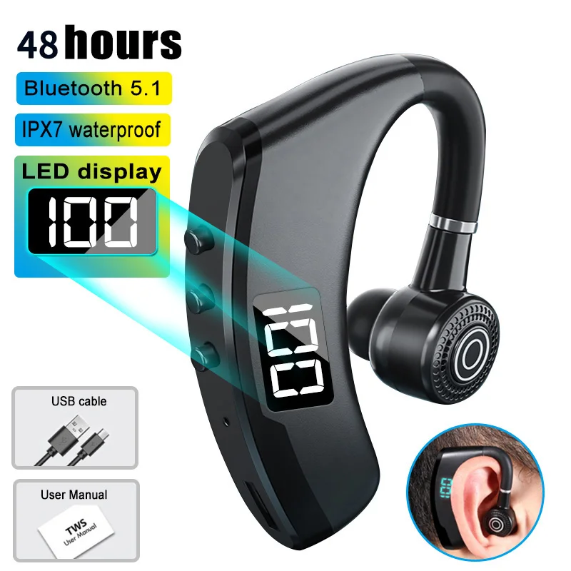 Comprar V9S V9 Business Auriculares Bluetooth Pantalla LED, 270 ° Rotación, con micrófono, auricular inalámbrico ENC resistente al agua deportivo auricular de música HiFi