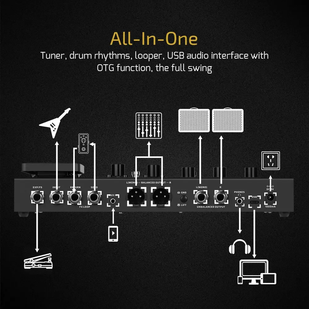 2.Versatilidad omnipotente: Diseñado como una solución todo en uno, se adapta perfectamente a diversos escenarios, incluidas sesiones de práctica, presentaciones en vivo y grabación en el hogar.Ya sea para guitarras acústicas, eléctricas o bajos, ofrece una calidad de sonido constante y de calidad de estudio en todos los géneros, eliminando la necesidad de múltiples dispositivos separados.