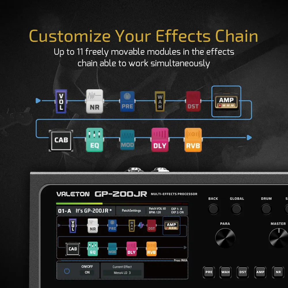Comprar VALETON GP-200JR procesador de amplificador de bajo de guitarra estéreo multiefectos FX Loop MIDI E/S OTG interfaz de Audio USB regalos