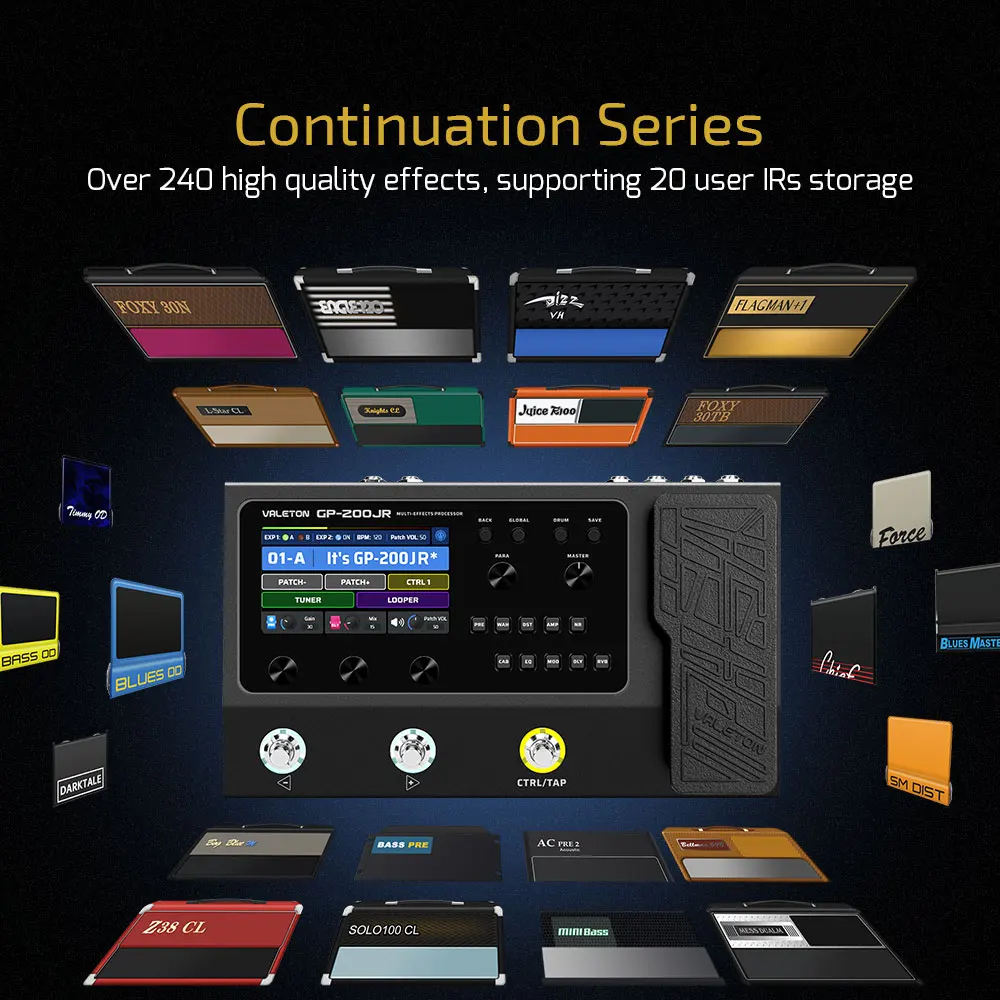 GP-200JR es un nuevo producto de la plataforma de segunda generación de la serie Valeton GP, un procesador compacto de múltiples efectos de modelado HD.Como puede ver, en comparación con el modelo insignia de la serie GP-200, el GP-200JR ha reducido significativamente su tamaño, pero también conserva la pantalla, la perilla y el botón necesarios para la interacción hombre-máquina, la interfaz completa y el sensible. y pedal incorporado eficiente.