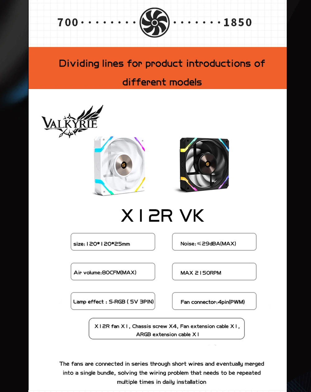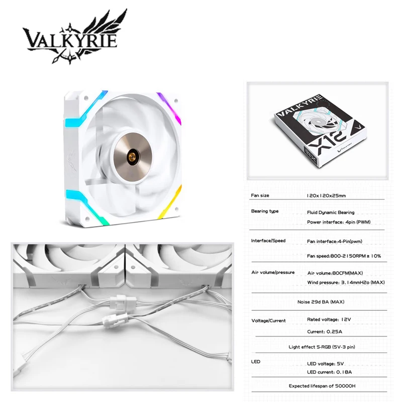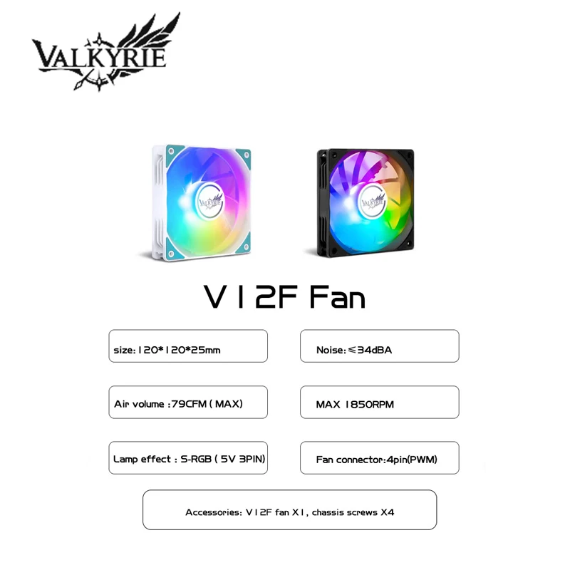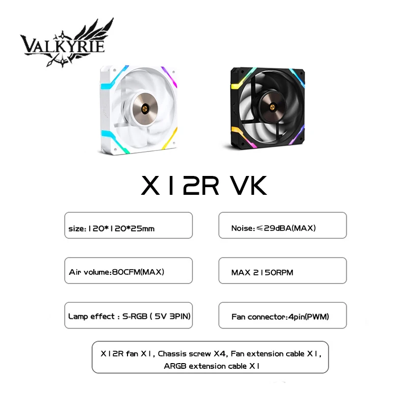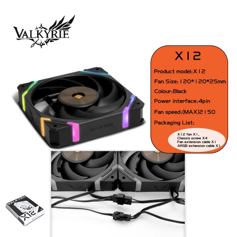 Comprar Valkyre-ventilador de refrigeración V12F para ordenador, Enfriador de carcasa de 120mm para Pc, Gamer, CPU, ARGB, 4 pines, PWM