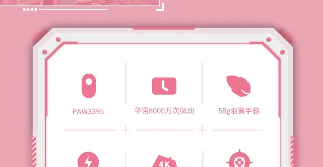 Función de marca:Sensor insignia PAW3395: ¡Sensor de nivel de píxeles, que captura cada detalle de los movimientos de tu cuerpo para un posicionamiento preciso!