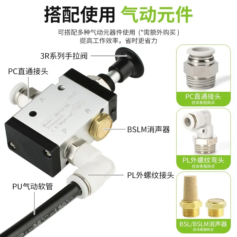 Comprar Válvula de aire neumática de empuje manual, 2 posiciones, 3 vías, 3R110-06 3R210-06 3R210-08 3R310-10 3R410-15