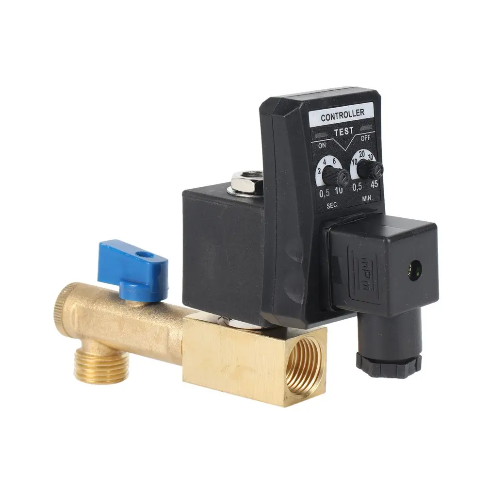 Comprar Válvula de drenaje electrónica, compresor de aire con filtro, tanque de almacenamiento de aire seco, enfriador magnético electromecánico, 1/2 v, 220