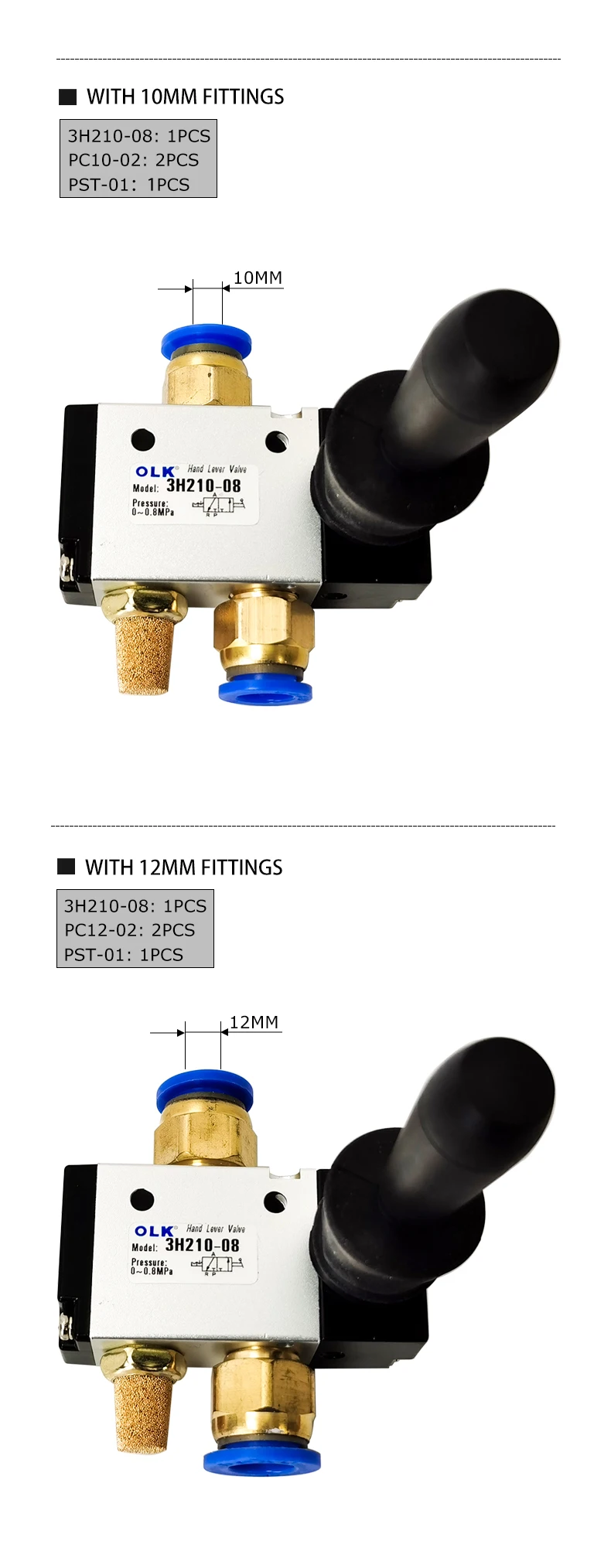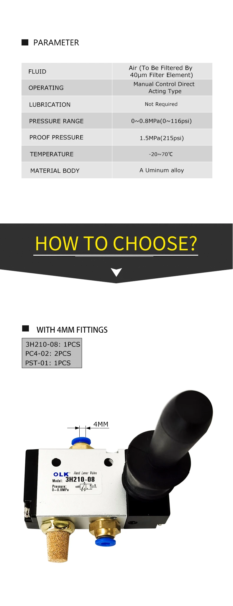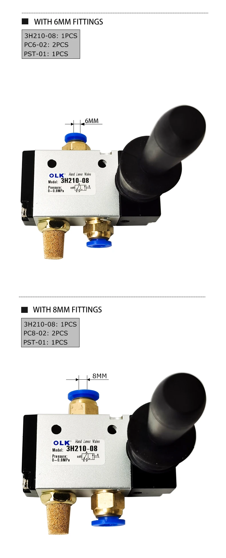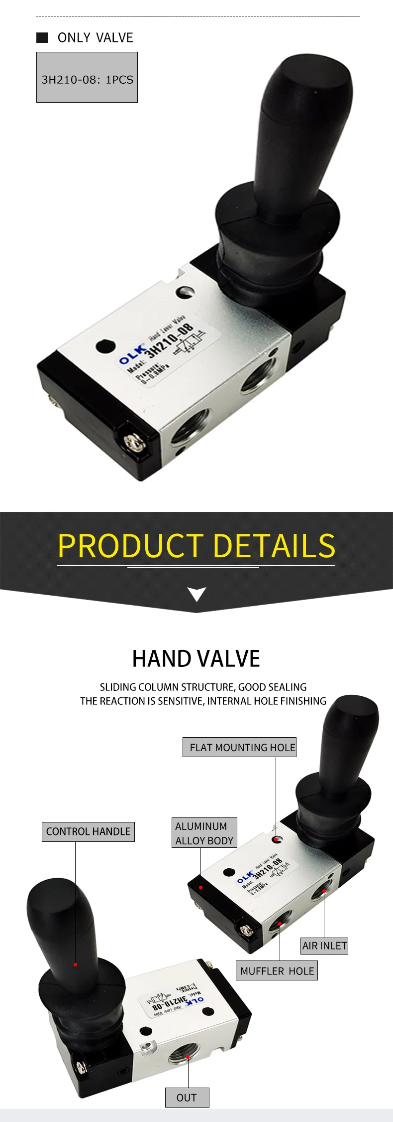 Comprar Válvula neumática de palanca manual normalmente cerrada, 3 vías, 2 posiciones, 1/8, 1/4 BSP, 3H210-08 3H310-10 3H410-15