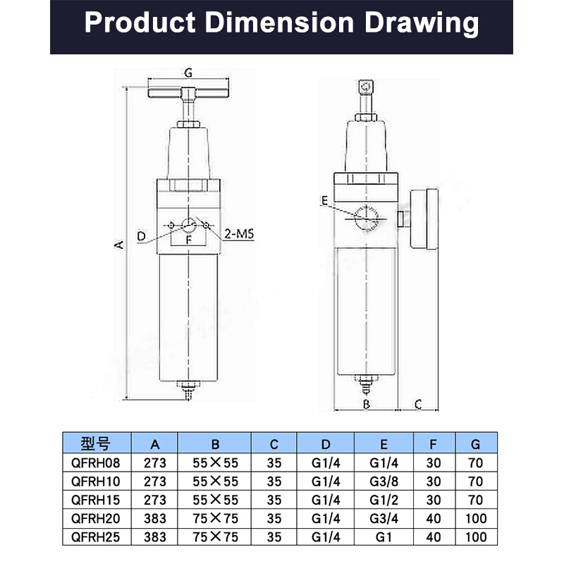 Válvula reductora de alta presión, filtro regulador de presión, separador de agua y aceite para compresor de aire QFRH-08/10/15/25