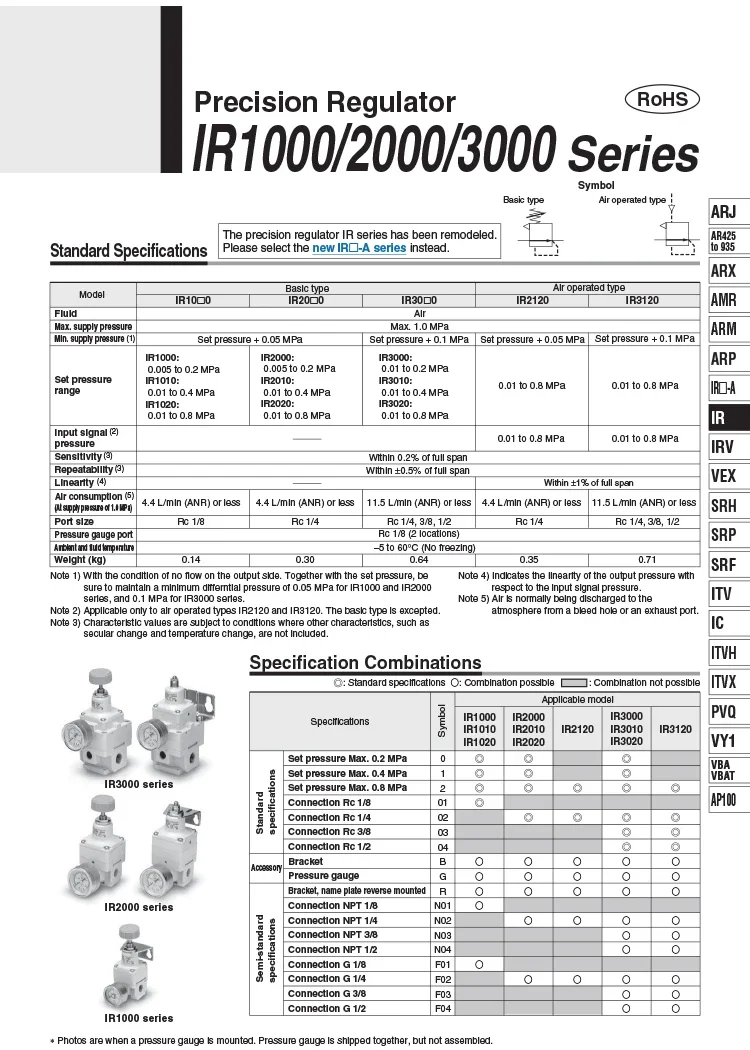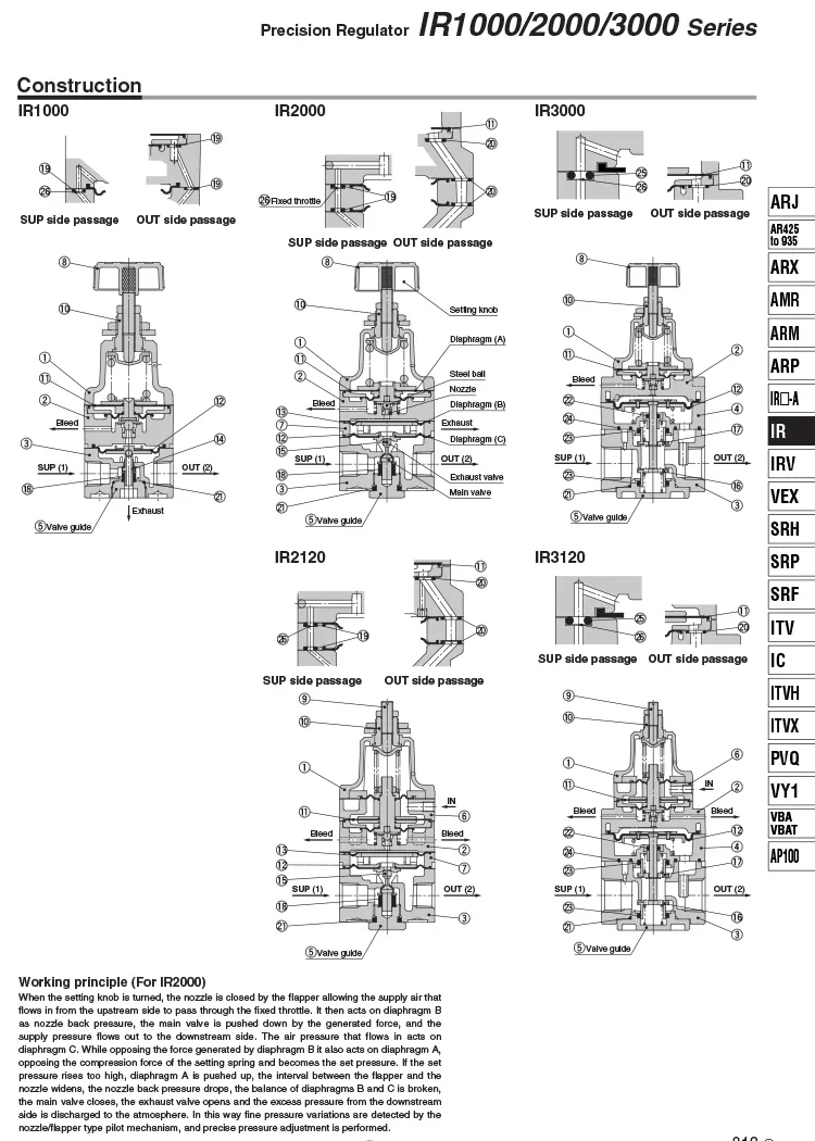 Válvula reductora precisa tipo SMC Regulador de presión de aire Regulador de precisión IR1000-01 IR1010-01 IR1020-01BG IR2000-02 IR2010-02BG