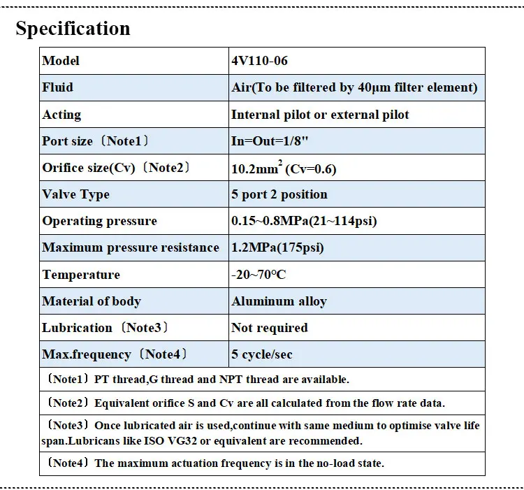 Válvula Solenoide de aire 4V110-06 1/8, válvula neumática de 5/2 vías, 5 puertos, 2 posiciones, válvulas magnéticas eléctricas de Gas DC12V 24V 110V 220V
