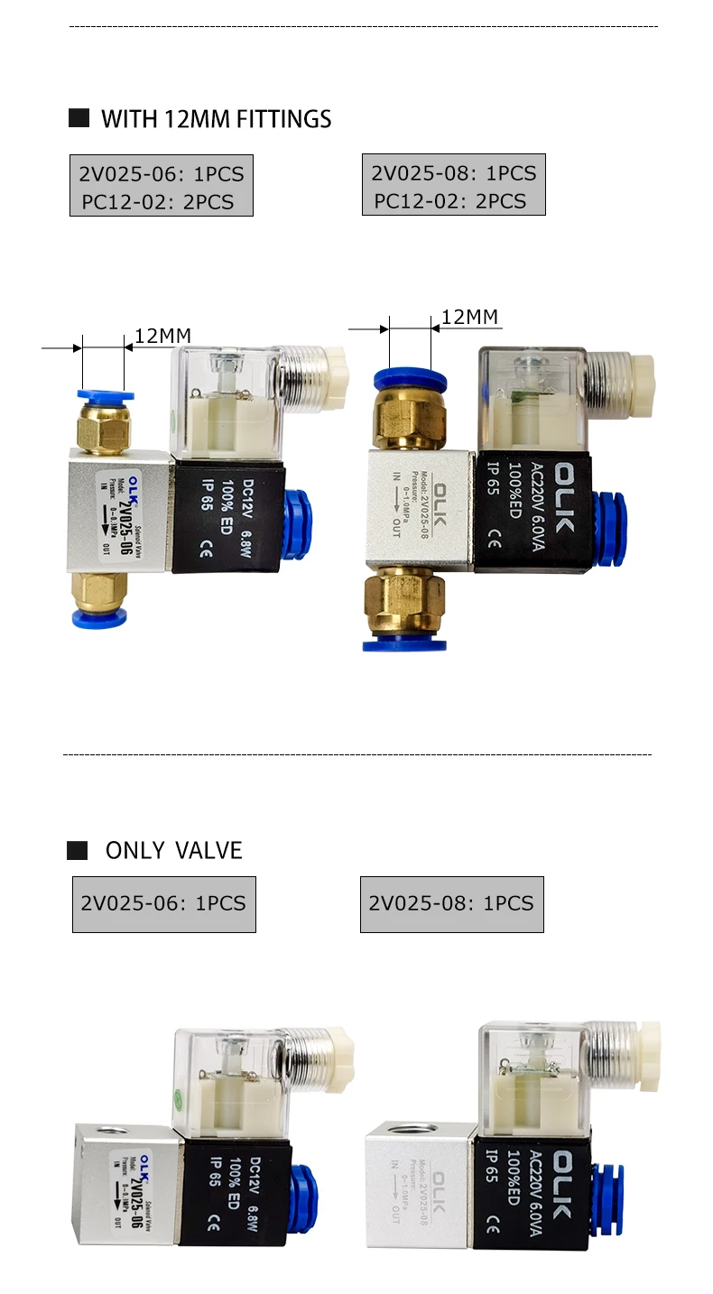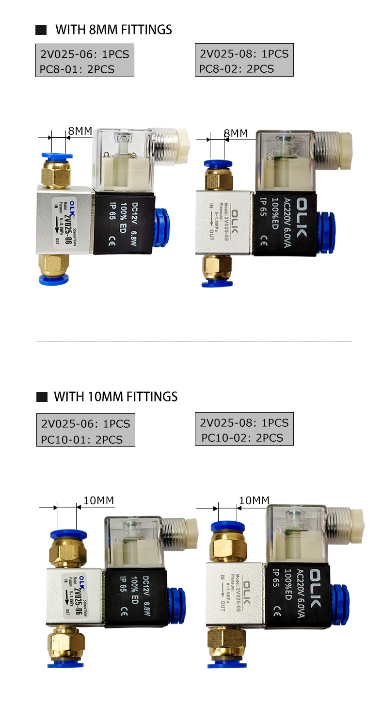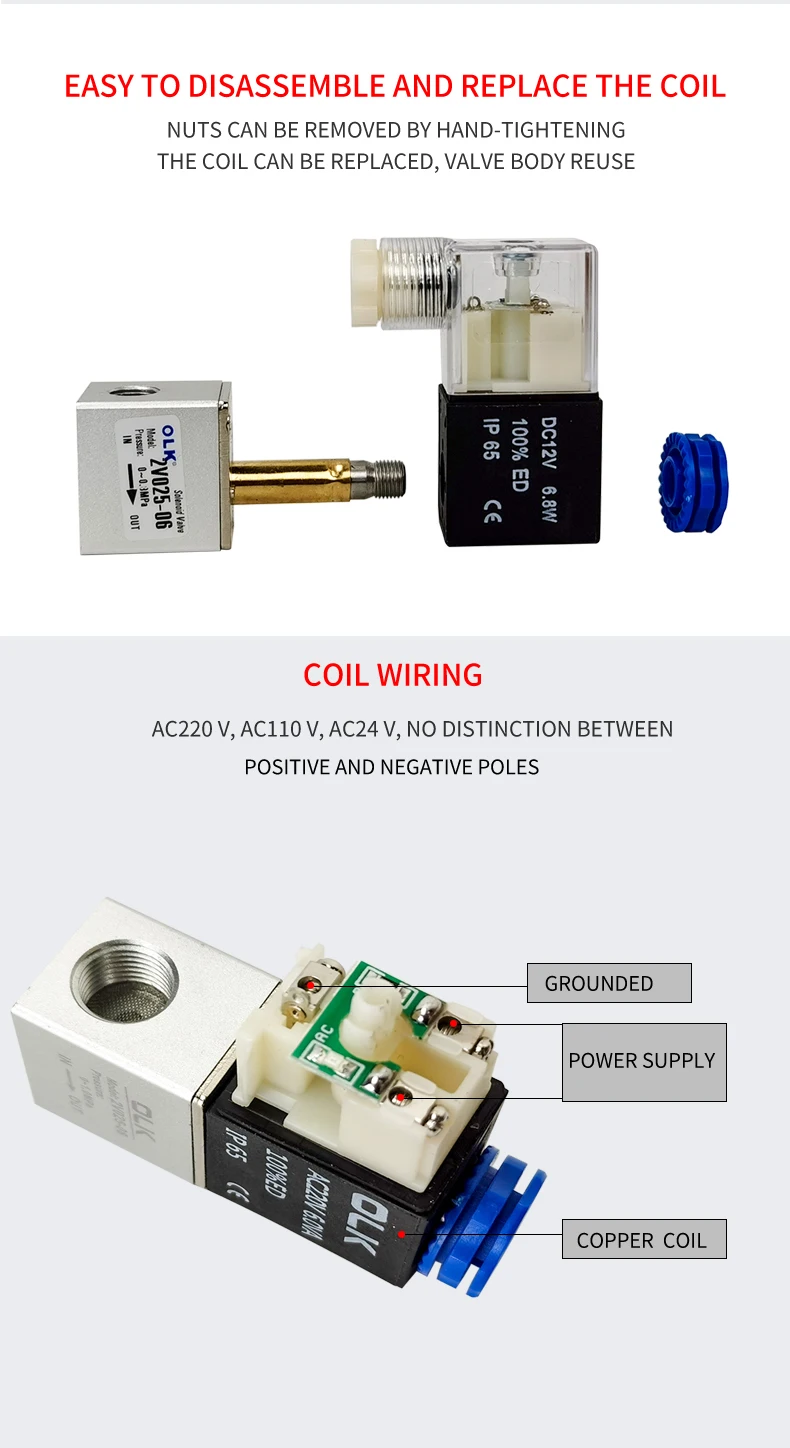 Comprar Válvula Solenoide de aire, dispositivo de Control neumático normalmente cerrado, cc 12V 24V 220V 110V 2 vías 2 posiciones, 2V025-08/06, 10 Uds.