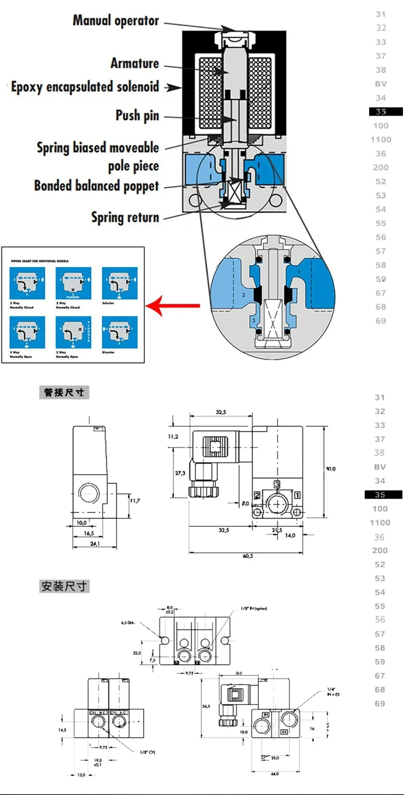 Specifications:product name:Solenoid valvemodel:35A-ACA/AAA-DDBA/DDAA/DDFA-1BAVoltage:DC12V DC24VPort: 1/8BSPPower:5.4Wpackaging:1X Solenoid valve