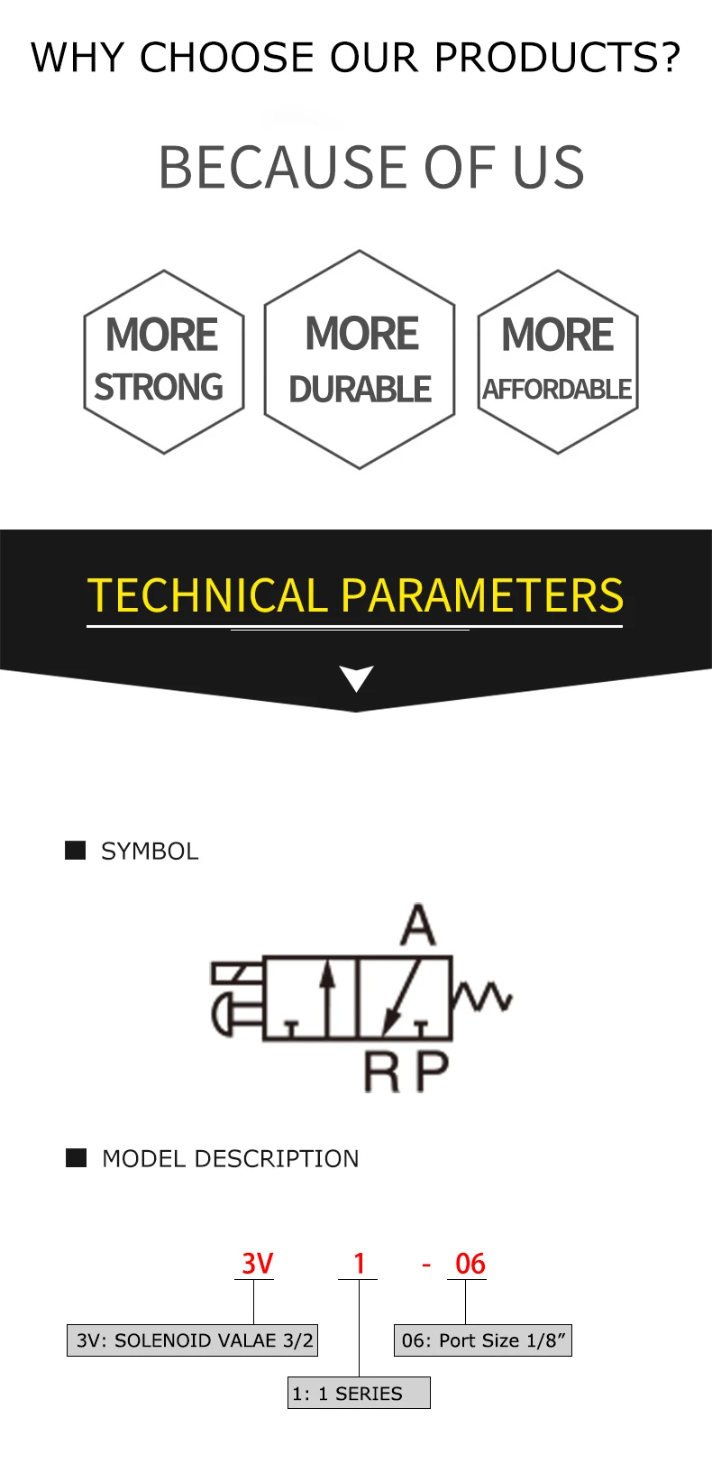 3. La válvula solenoide de tres posiciones afeita tres tipos de función central para su elección.