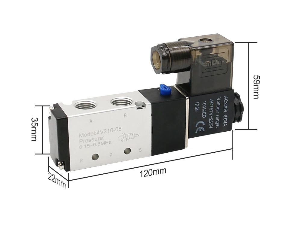 Solenoid Valve Type: 5 Port 2 position (5 Way 2 Position)