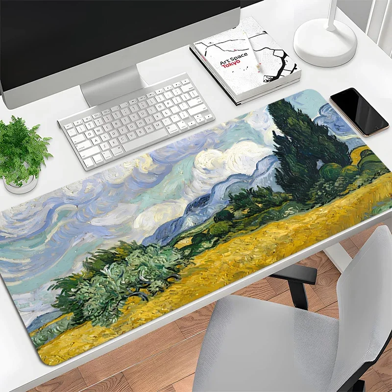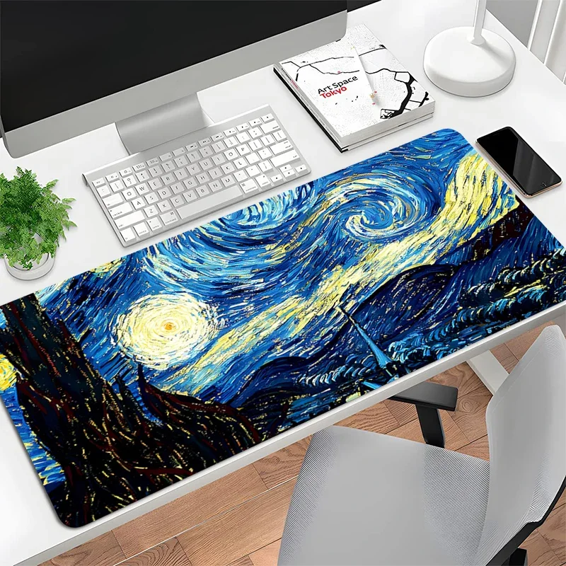 Comprar Van Gogh pintura al óleo teclado escritorio alfombrilla de ratón HD alfombra Gamer gabinete cojín accesorios de juego alfombrilla Pc Xxl alfombra grande para ordenador