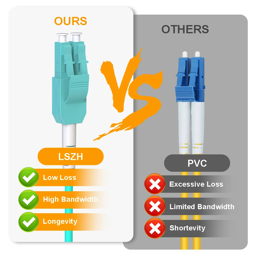 Conectividad de alta velocidad:El cable de fibra LC OM3 admite la transmisión de datos de alta velocidad, lo que lo hace ideal para aplicaciones de red exigentes.