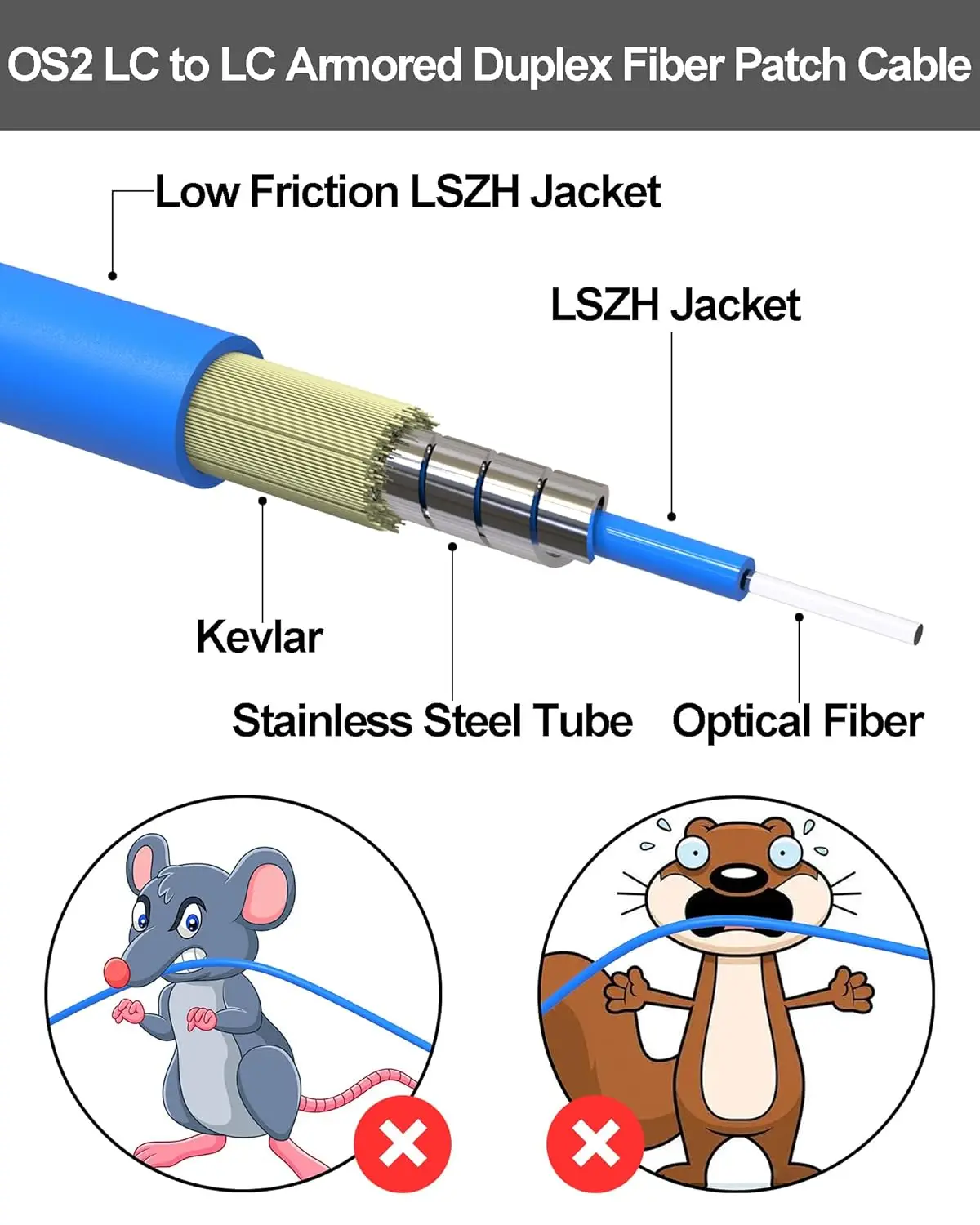 Diseño blindado duradero: El cable de fibra óptica monomodo VANDESAIL OS2 cuenta con una capa blindada robusta, que ofrece una protección excepcional contra daños físicos, lo que lo hace ideal para entornos hostiles.