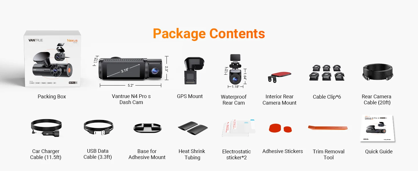 [Fácil de instalar y súper condensador] La cámara de tablero VANTRUE N4 Pro S 4K cuenta con un soporte deslizante magnético para una fácil instalación y una rápida configuración y desmontaje. Alimentado por un supercondensador garantiza un rendimiento confiable en temperaturas extremas sin riesgo de baterías. ¡Disfrute de la tranquilidad con atención al cliente las 24 horas, los 7 días de la semana y una garantía extendida de 18 meses!