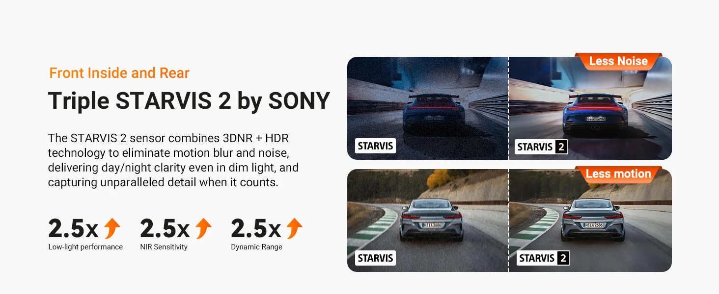 [Cámara trasera mejorada con STARVIS 2, 2,5 K e resistencia al agua IP67] Equipada con el sensor STARVIS 2 IMX662, esta cámara trasera mejorada graba vídeo de hasta 2,5 K (4 veces más nítido que 1080P de gama baja) para una visibilidad nítida de las matrículas.La carcasa impermeable IP67 resiste la lluvia y el polvo, diseñada para uso exterior en camionetas, SUV, vehículos recreativos y remolques.El perfil bajo y el diseño ultraancho eliminan los puntos ciegos para mejorar la seguridad durante el estacionamiento.