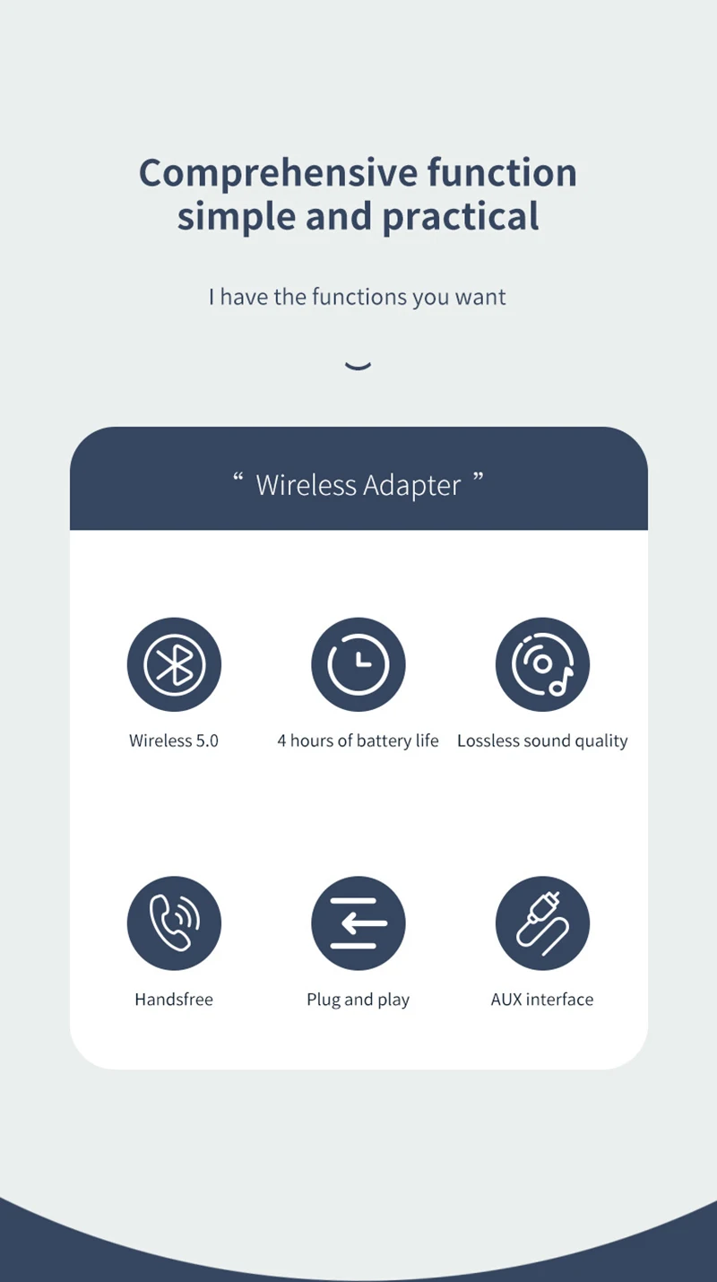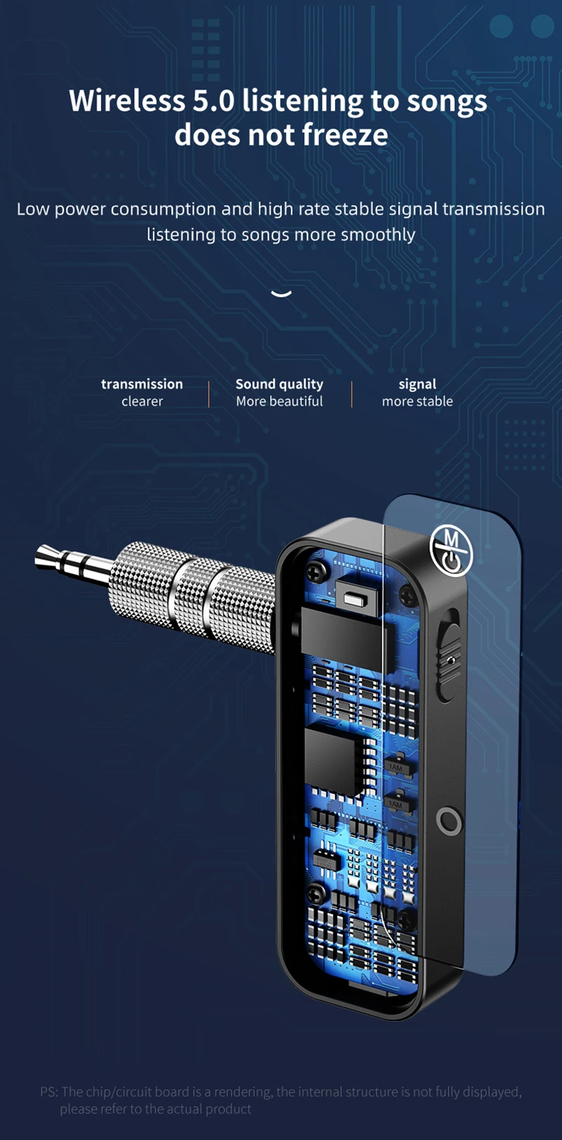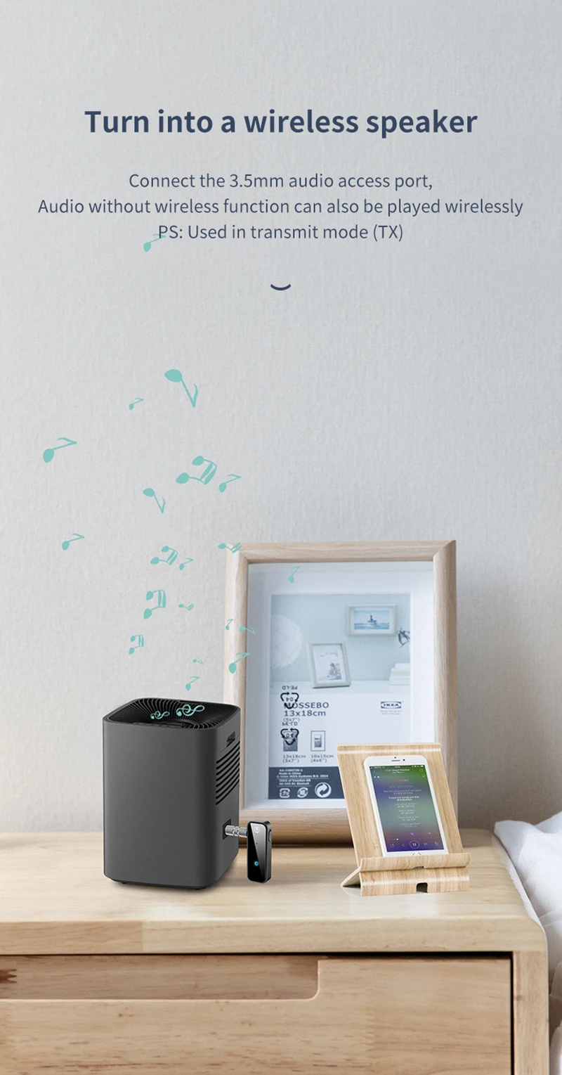 ---The function of the Bluetooth receiver is to add Bluetooth wireless function to the wired speaker/headphone, so that the Bluetooth-enabled device such as the mobile phone can be wirelessly connected to the wired speaker/headphone through the adapter.
