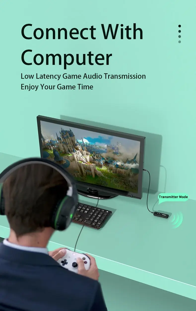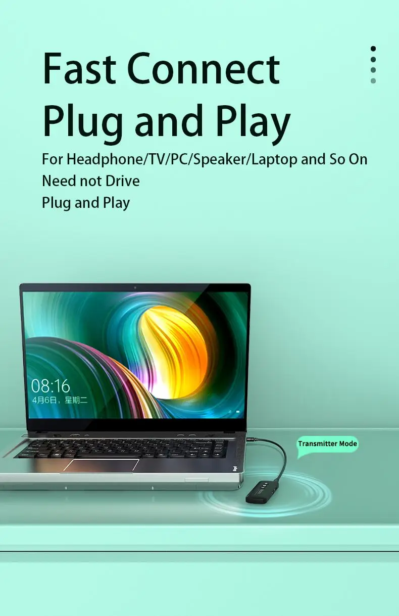 ---La función del transmisor bluetooth es agregar una función bluetooth a dispositivos sin función bluetooth como TV/computadora, de modo que puedan conectarse a altavoces/auriculares bluetooth.Este es un transmisor Bluetooth integrado con la tecnología más nueva, no aparecerá en los dispositivos Bluetooth de su teléfono, computadora o televisor y solo necesita acercar los dispositivos Bluetooth a este transmisor Bluetooth y luego se conectarán entre sí automáticamente.