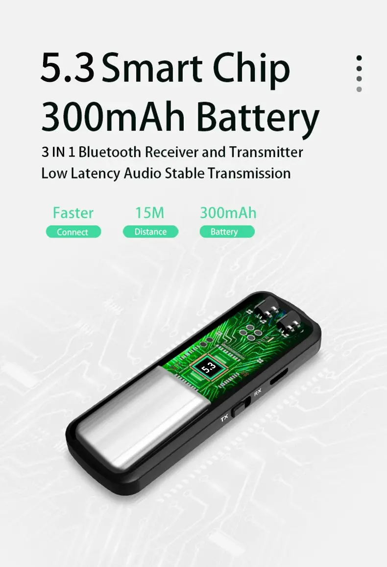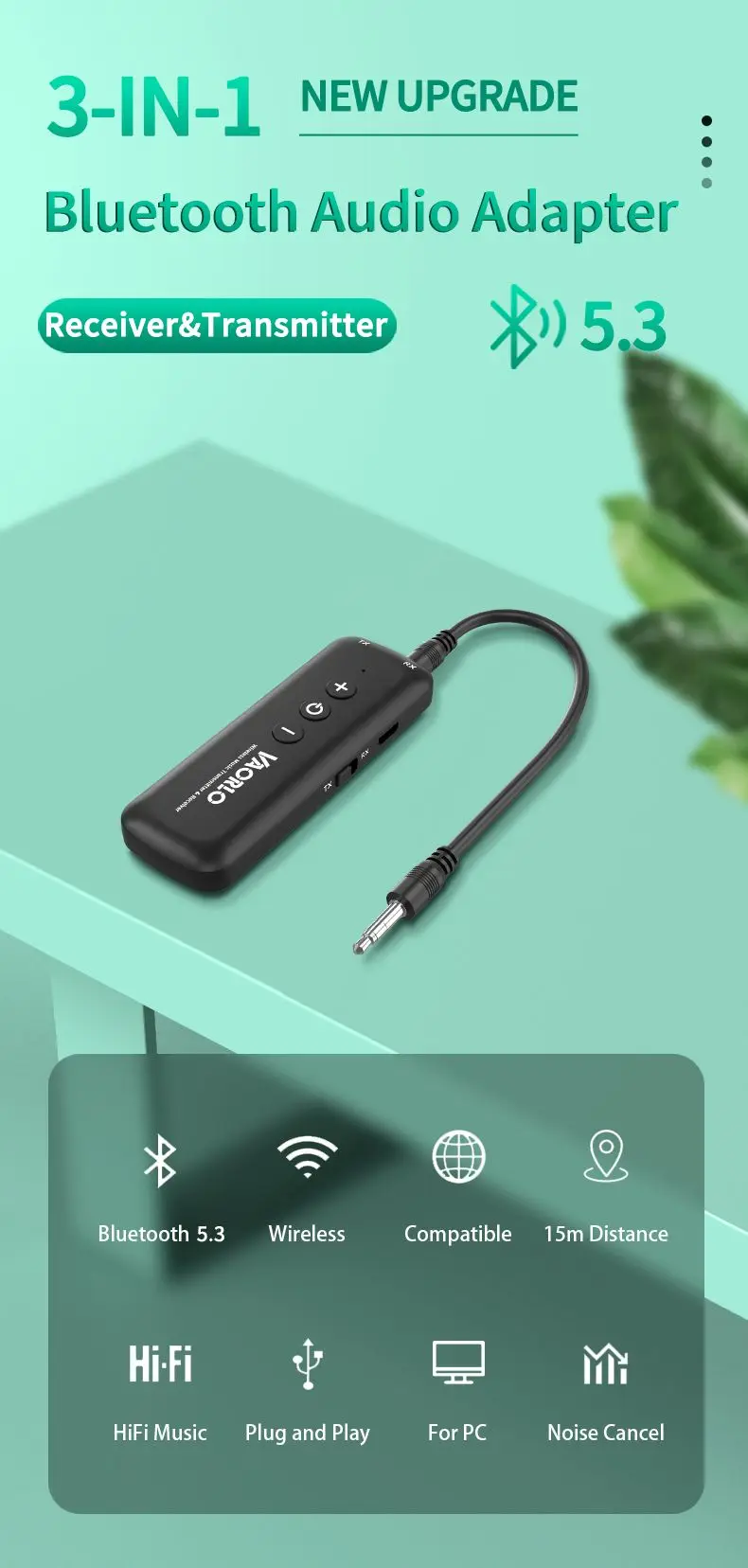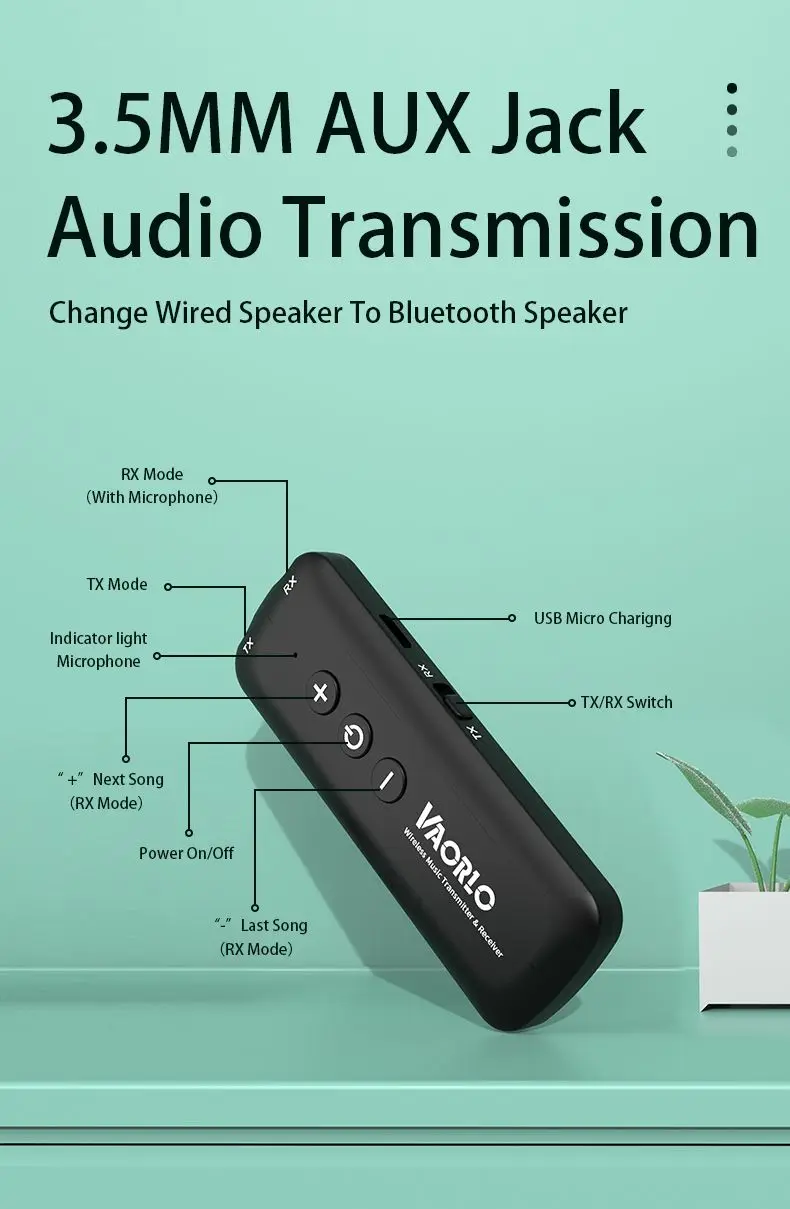 VAORLO ZF-360B Receptor transmisor de audio Bluetooth 5,3 3 en 1