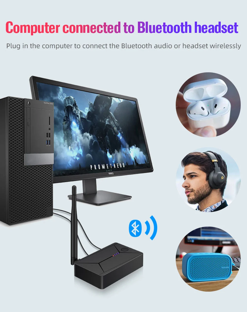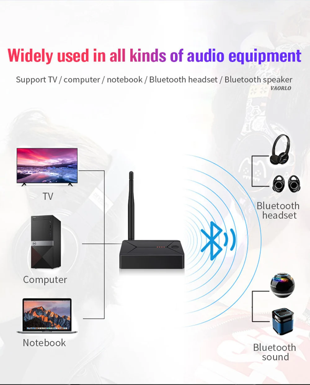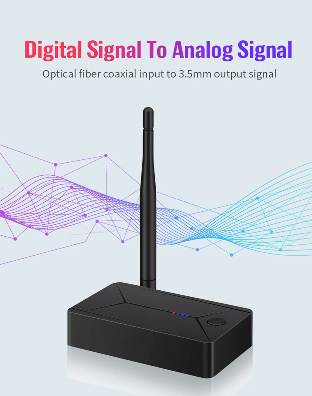 2: Señal digital a analógica, conecta FIBRA DE TV o producto de conexión coaxial, cable de audio de 3,5mm al altavoz. Puede resolver fácilmente los problemas de la TV sin puerto de audio de 3,5mm sin altavoz Bluetooth.