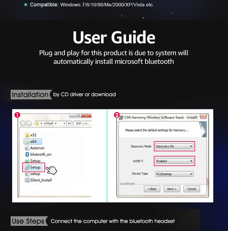 Adaptador mini USB Bluetooth 4,0 con alta velocidad de hasta 3Mbps.