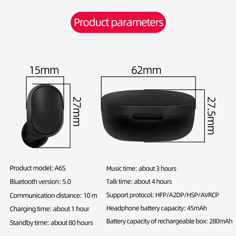 1x A6S TWS Bluetooth Earphone