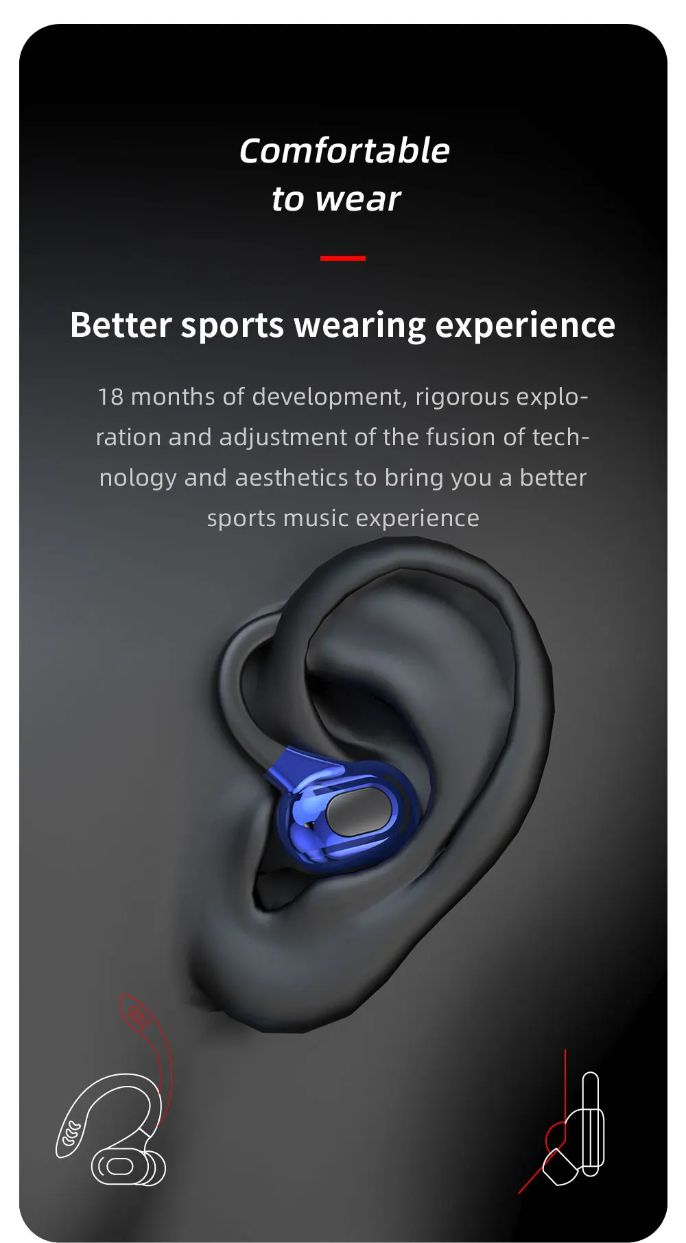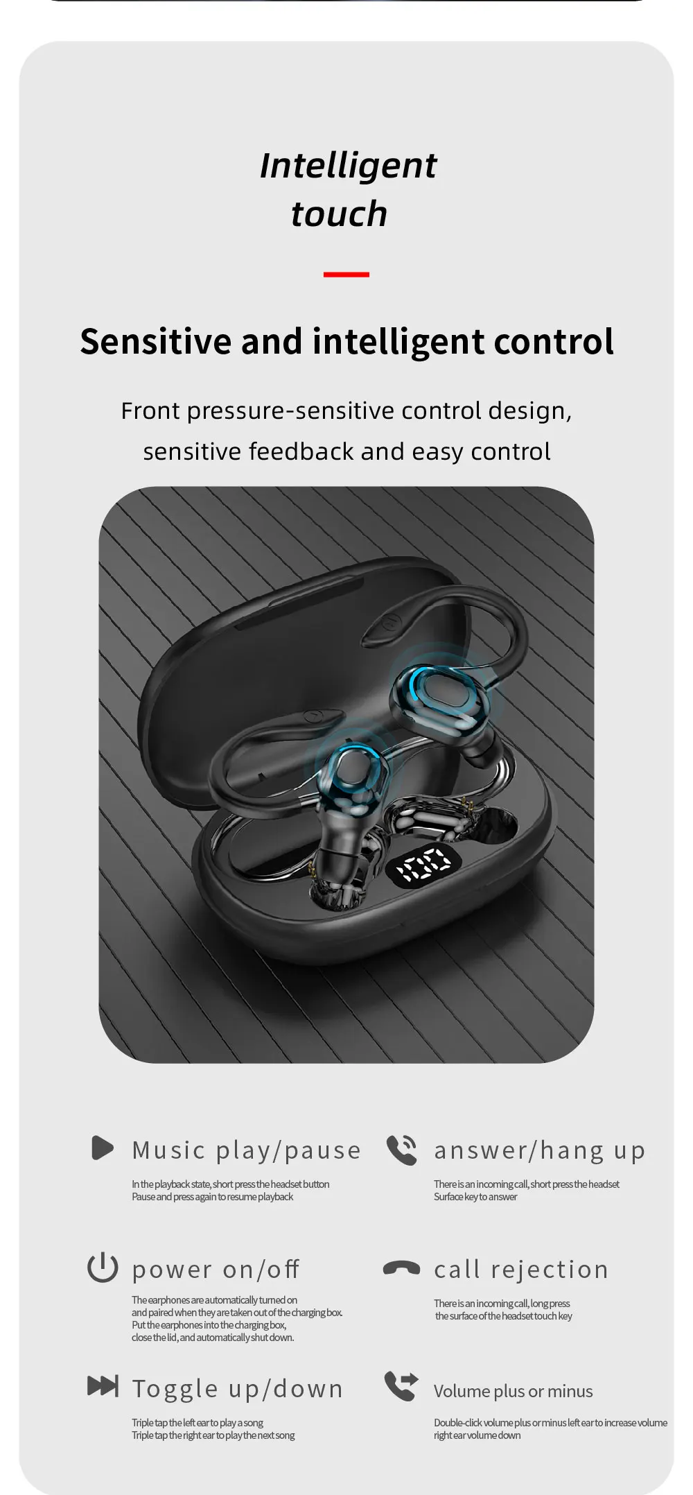 Comprar VAORLO-auriculares inalámbricos deportivos con Bluetooth, dispositivo con gancho para la oreja y Control táctil, HiFi estéreo, con cancelación de ruido para videojuegos y música