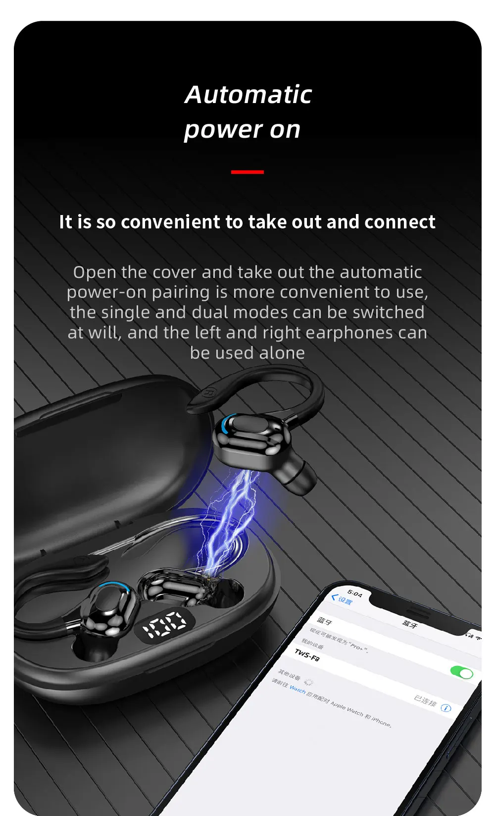 1x TWS-F8 auriculares Bluetooth (izquierda y derecha)