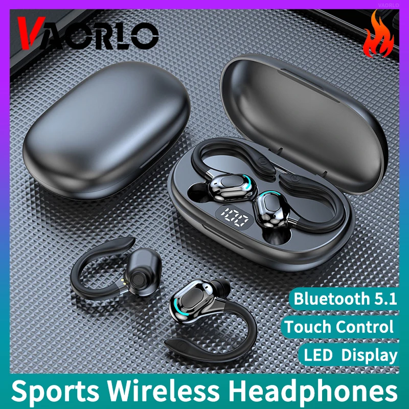 Comprar VAORLO-auriculares inalámbricos deportivos con Bluetooth, dispositivo con gancho para la oreja y Control táctil, HiFi estéreo, con cancelación de ruido para videojuegos y música