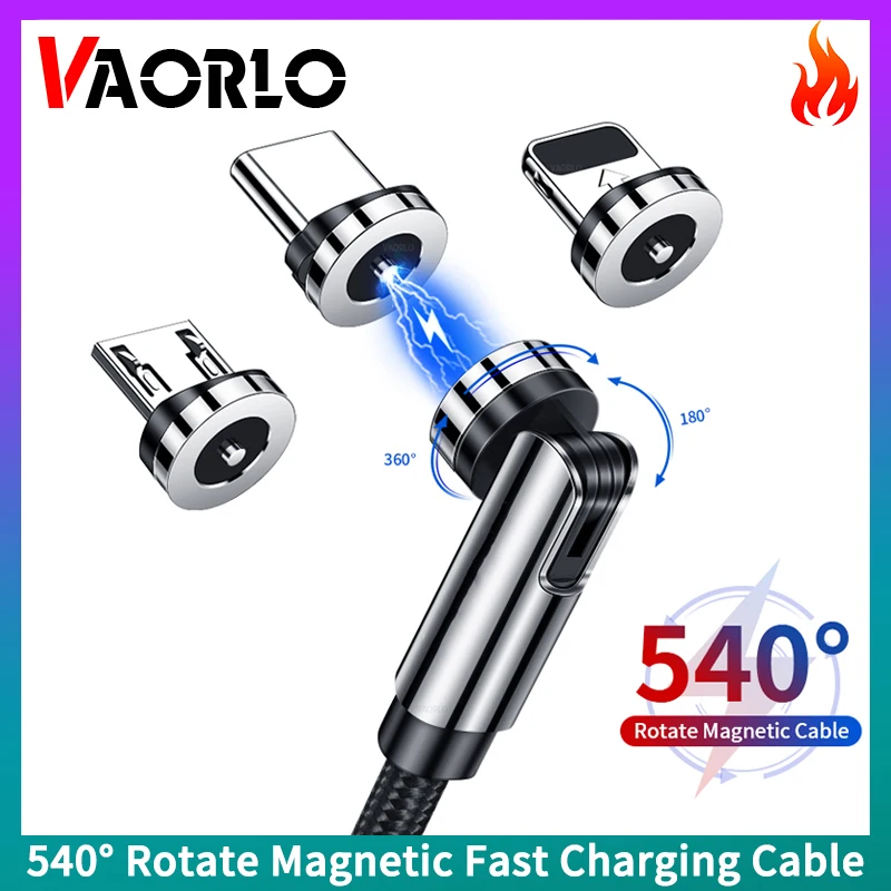 Comprar VAORLO-Cable de carga magnético con rotación de 540 °, Cargador rápido Micro USB tipo C, Cable de carga trenzado de nailon para iPhone y Xiaomi