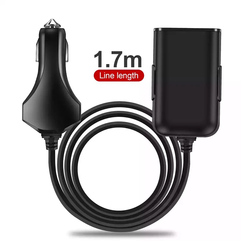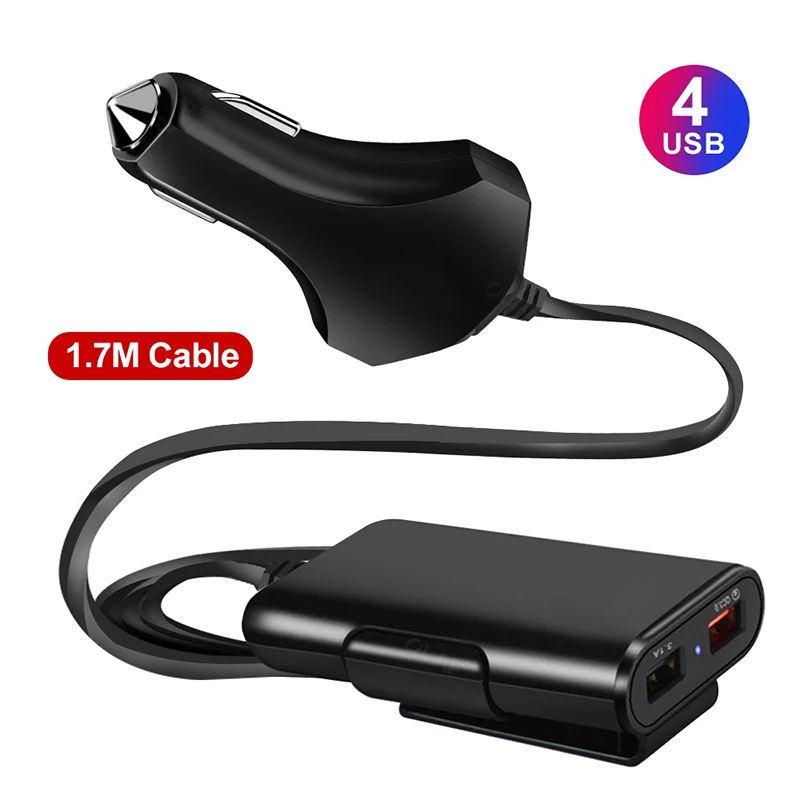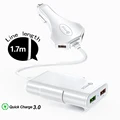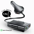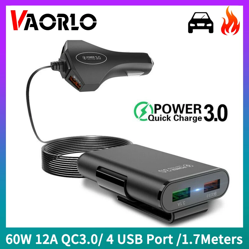 Comprar VAORLO-cargador rápido para coche, Hub de 4 puertos USB de 60W, 12a, QC3.0, Cable de extensión de 1,7 m/5,6 pies, carga rápida para parte delantera y trasera del pasajero