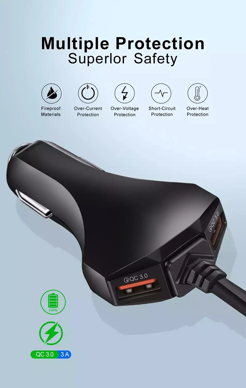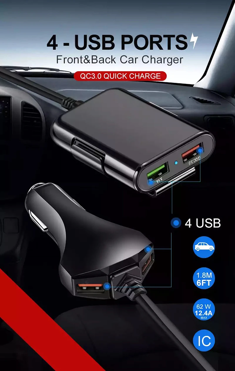 1. 4 USB car charger: 4 USB 1.8A/3.1A power ports to charge your 4 devices faster