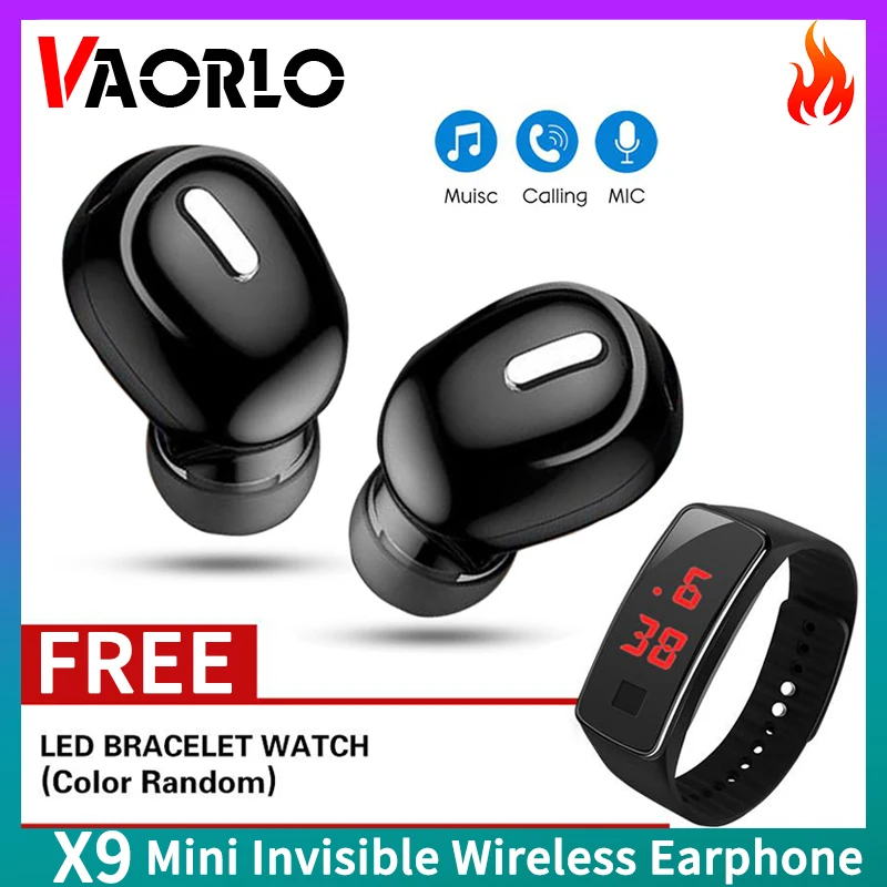 Comprar Vaorlo-miniauriculares inalámbricos X9 5,0, dispositivo de audio estéreo con Bluetooth, con micrófono, manos libres, con reloj LED gratis