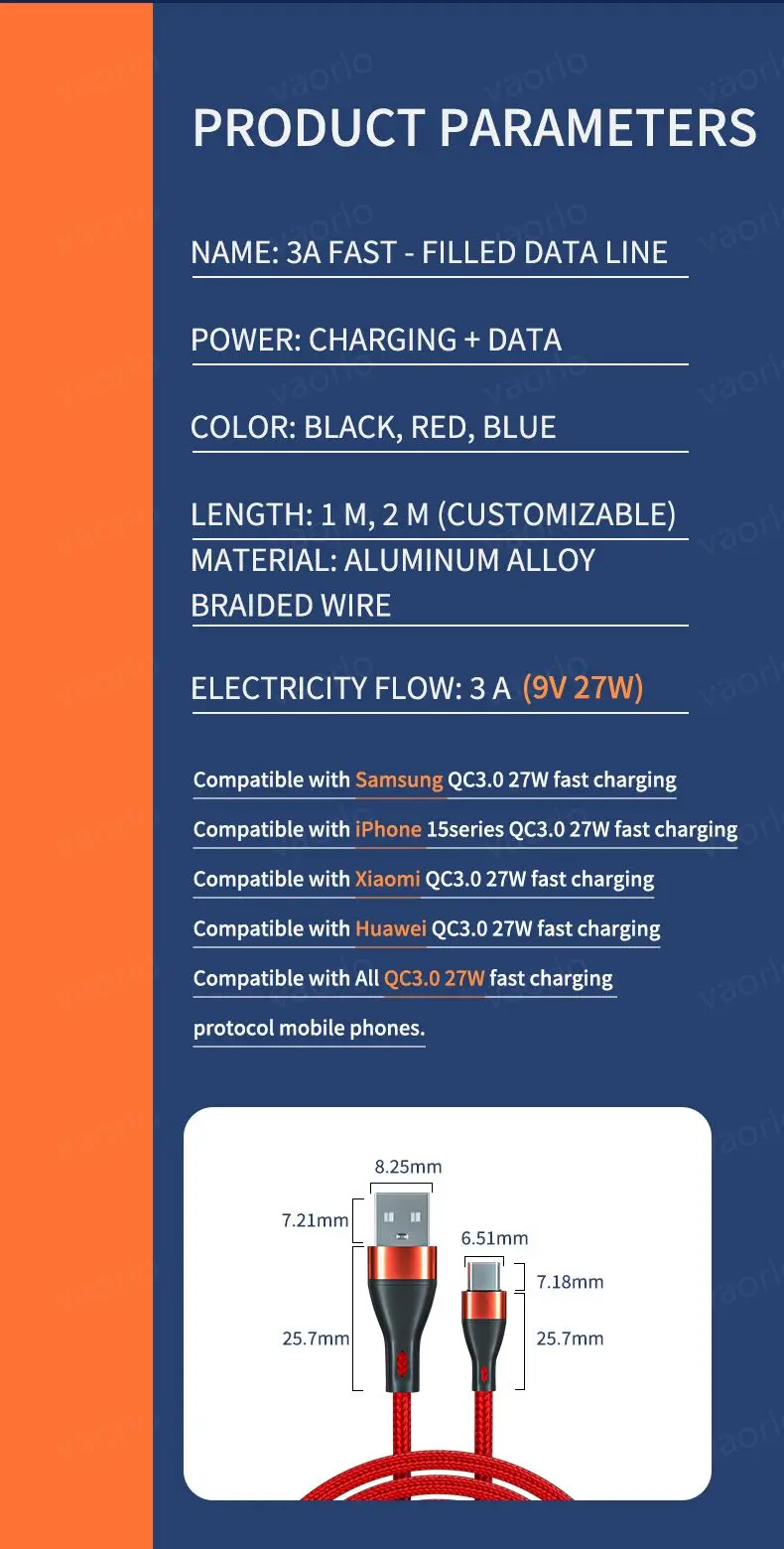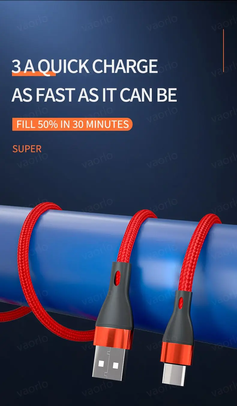 VAORLO Original QC3.0 27W Cable de carga rápida USB a tipo C/MicroUSB 1M 2M 3M Línea de datos del cargador 100% compatible con Samsung iPhone 15series Android