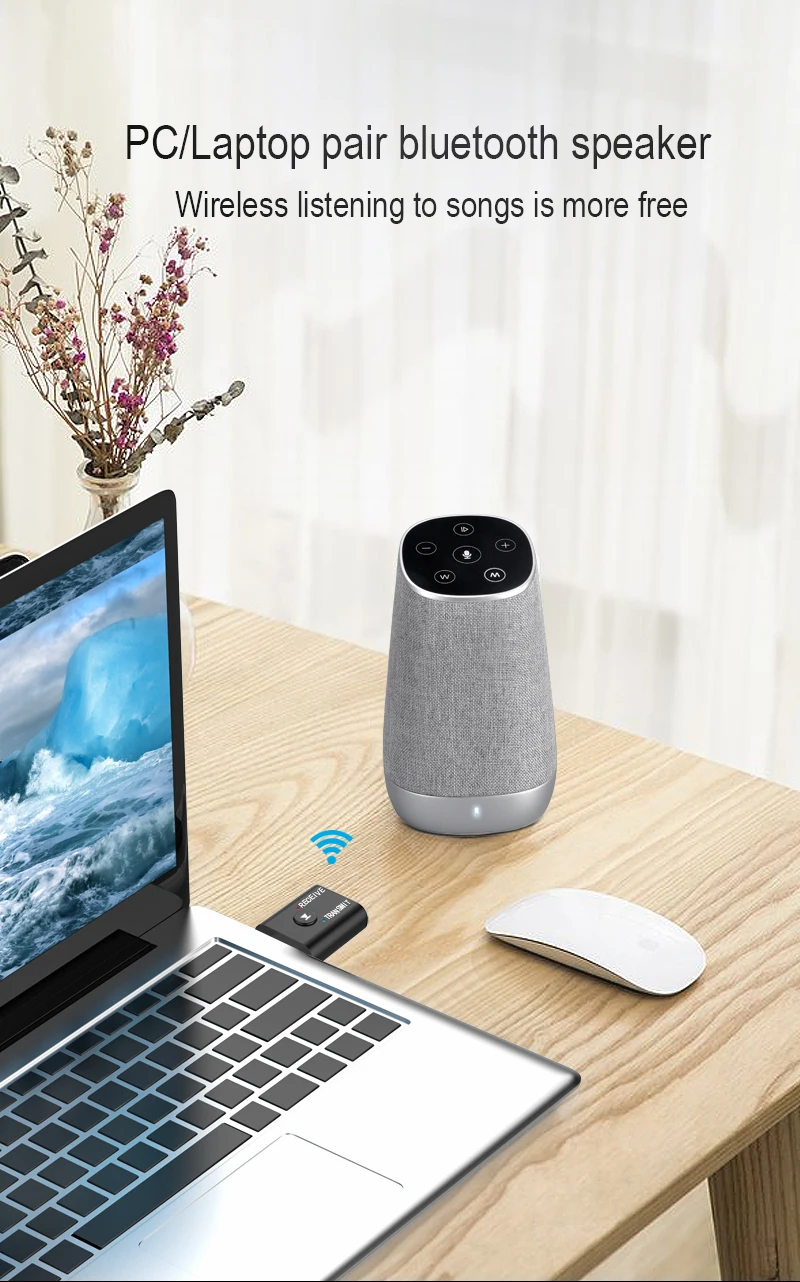 Comprar VAORLO-receptor de Audio con Bluetooth 5,0, Mini adaptador inalámbrico de música con conector de 3,5mm, AUX, estéreo, USB, para TV, coche, PC, auriculares, BT
