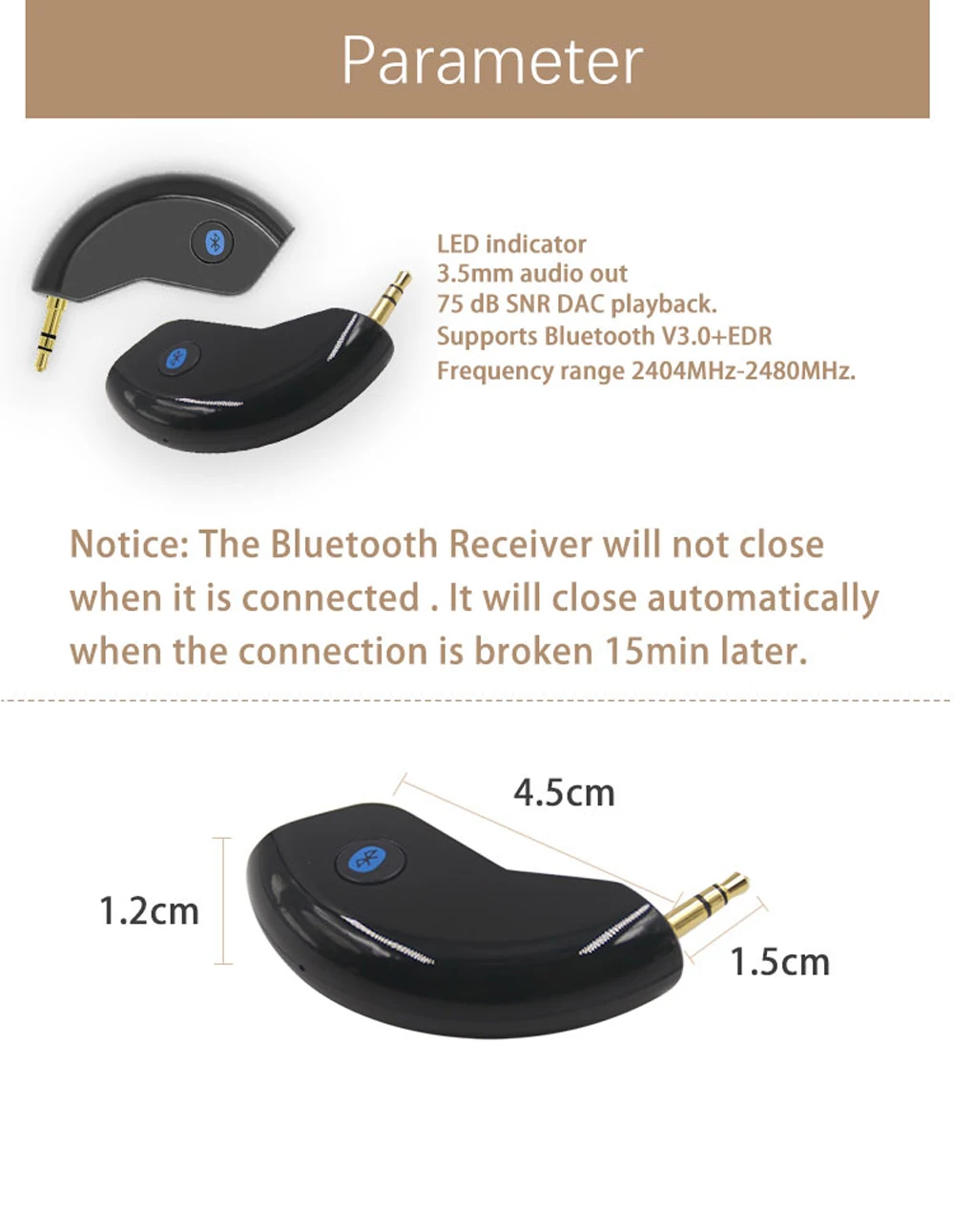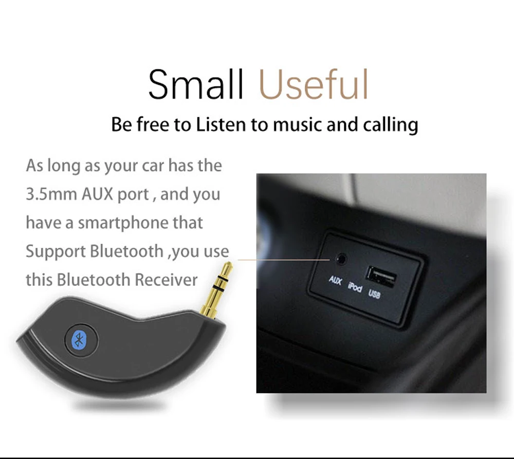 -Operación simple: configuración inalámbrica simple y fácil, se conecta automáticamente, el altavoz normal se convierte en altavoz bluetooth manos libres, receptor Bluetooth portátil para automóvil.