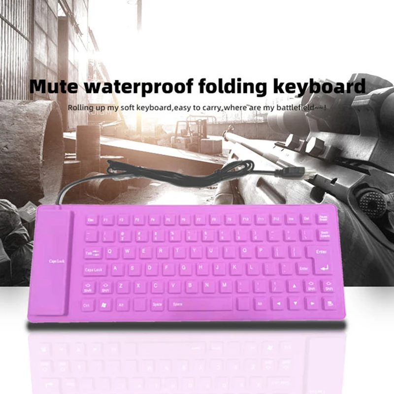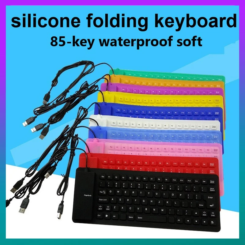 Comprar VAORLO-teclado plegable de silicona para PC, tableta, portátil, Flexible, portátil, con cable para juegos, Mini teclado impermeable, 85 teclas