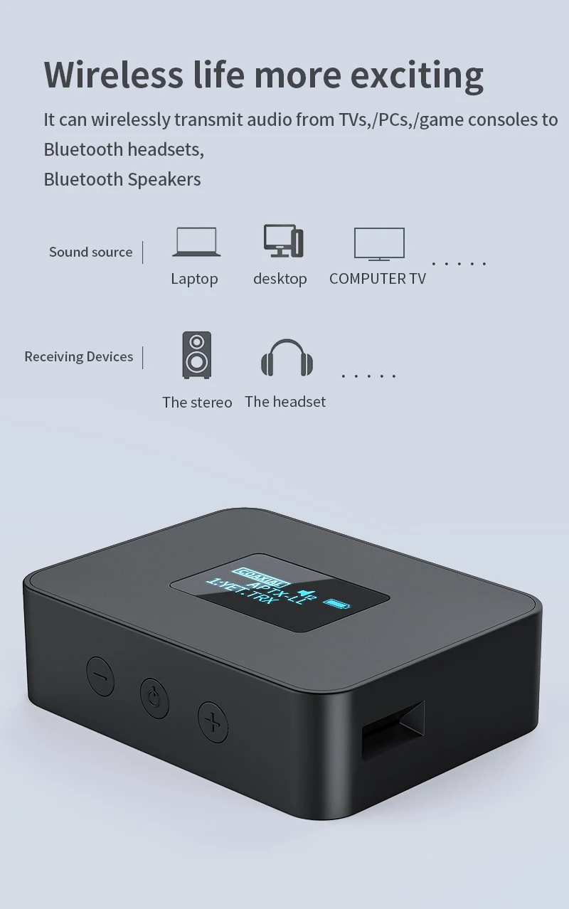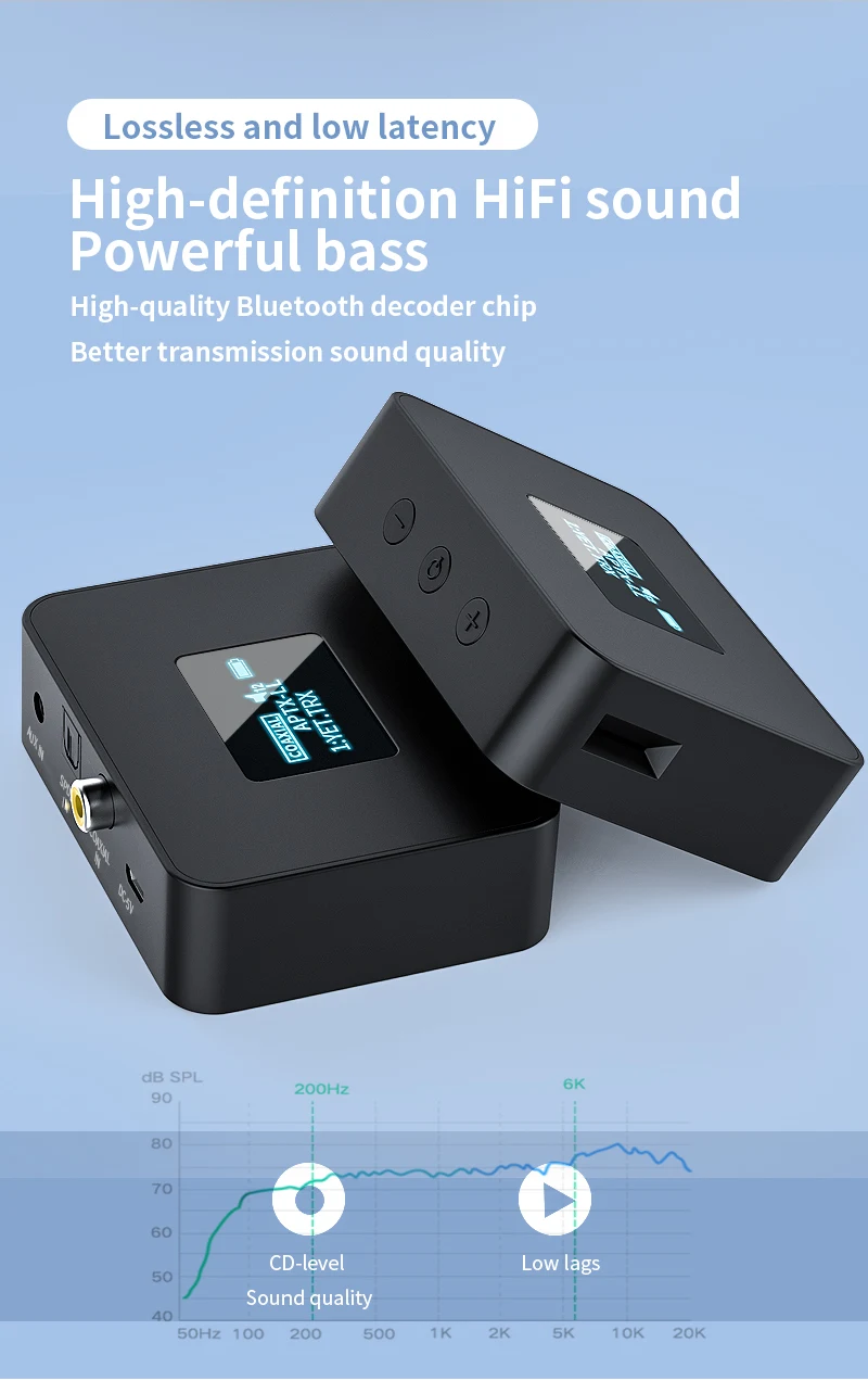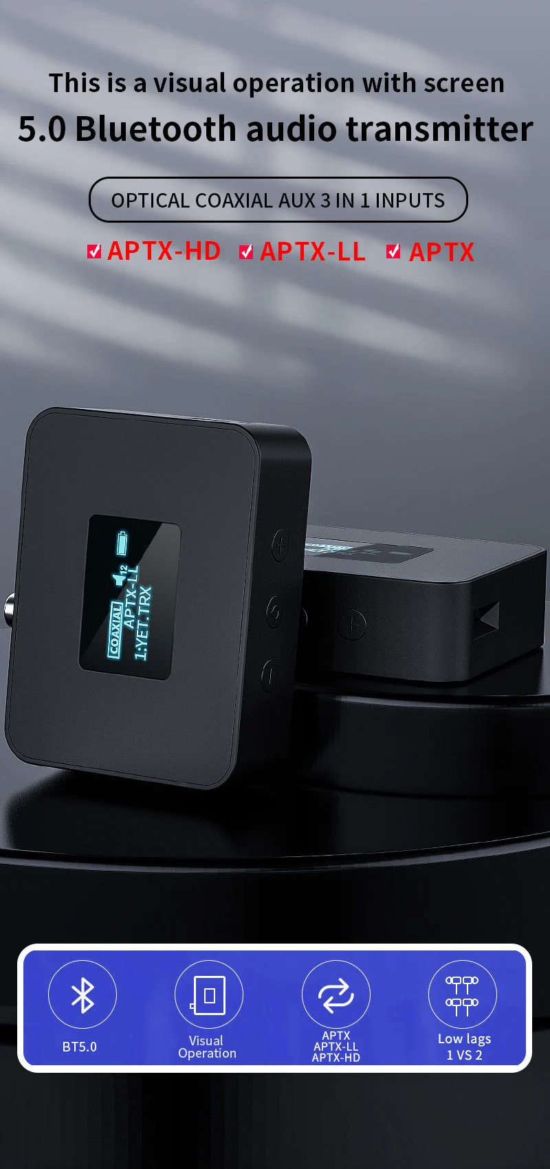 Comprar VAORLO-transmisor de Audio con pantalla OLED CSR 5,0, adaptador inalámbrico APTX-HD/LL SPDIF + Coaxial + AUX de 3,5mm para TV y PC
