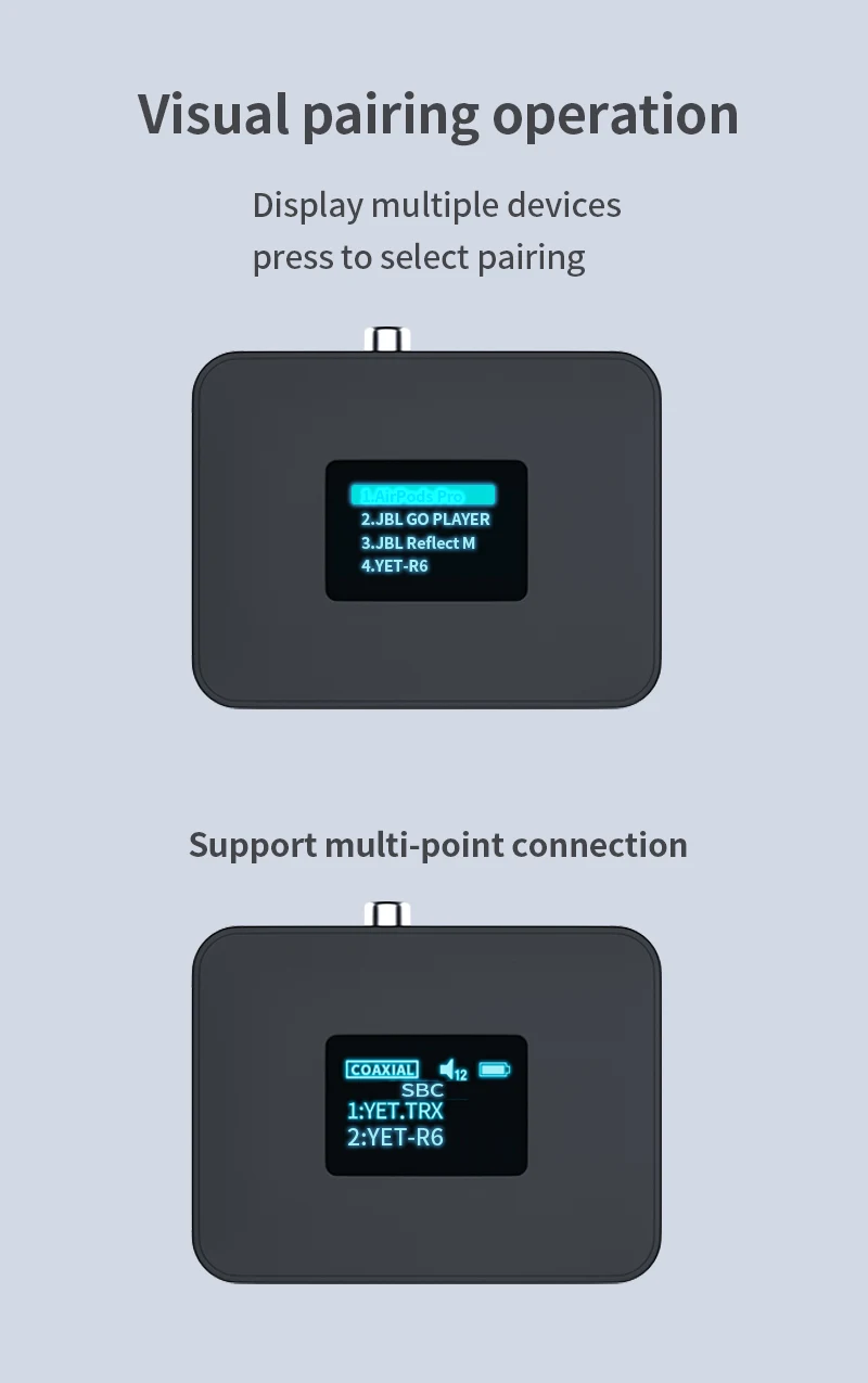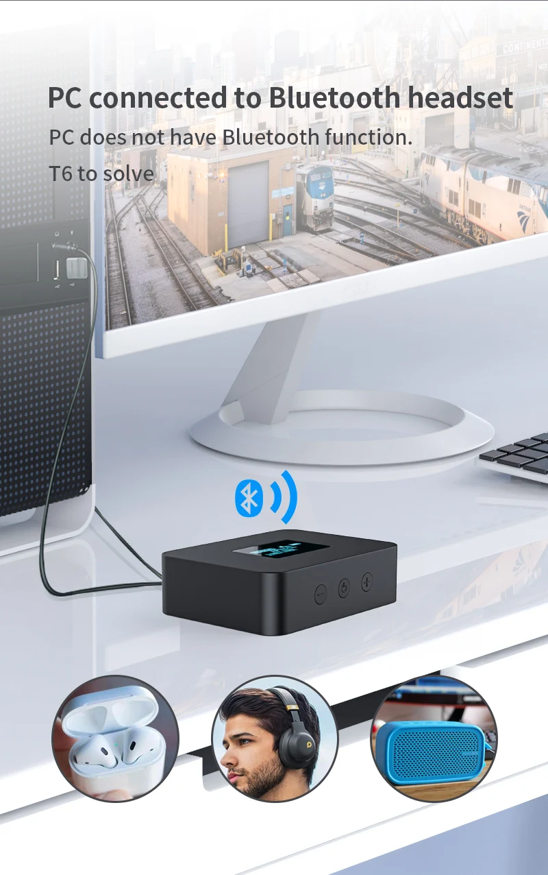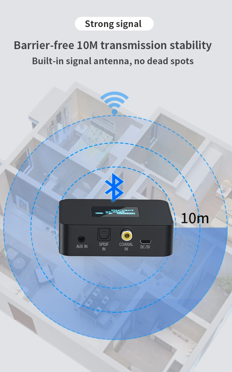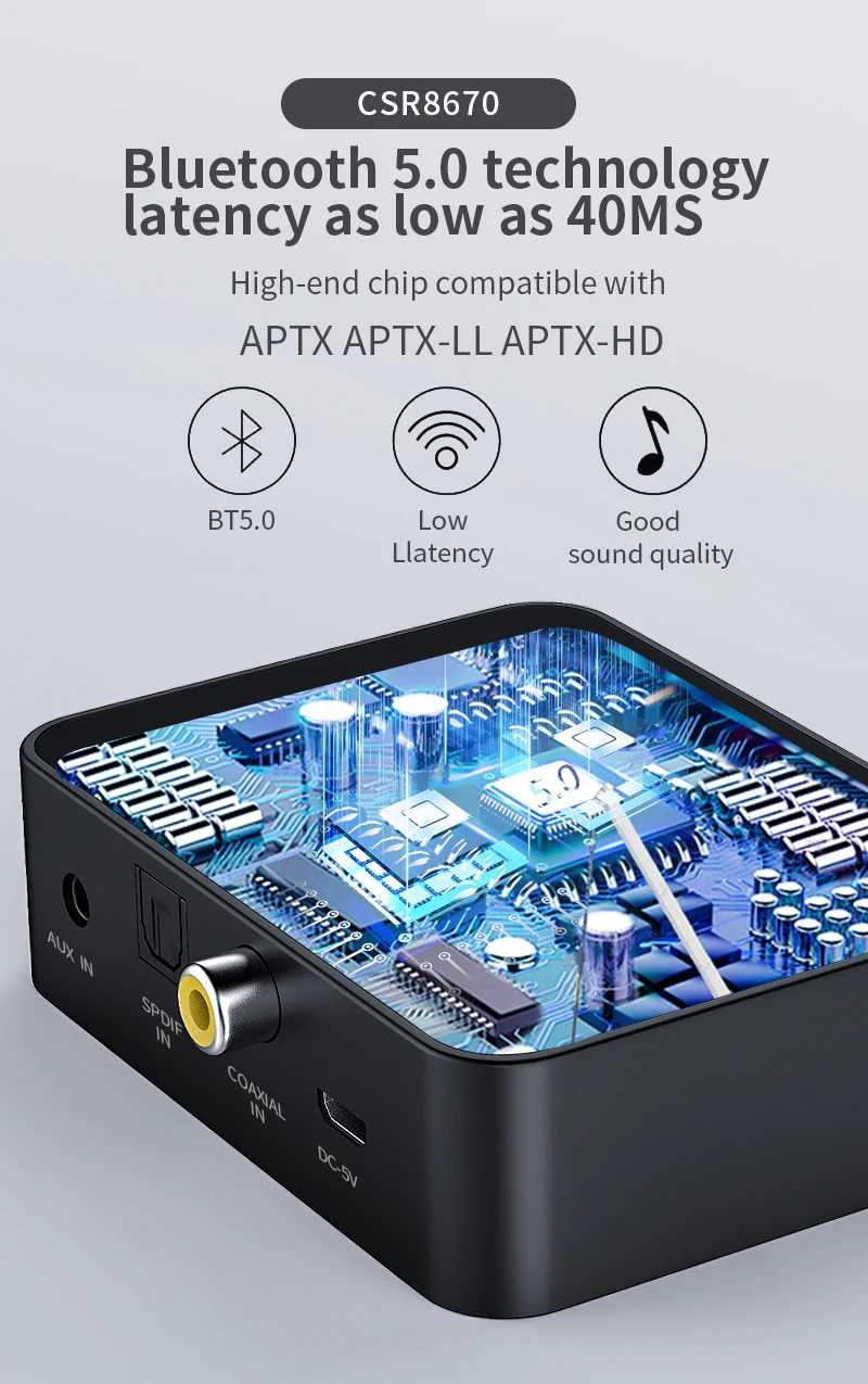 Comprar VAORLO-transmisor de Audio con pantalla OLED CSR 5,0, adaptador inalámbrico APTX-HD/LL SPDIF + Coaxial + AUX de 3,5mm para TV y PC