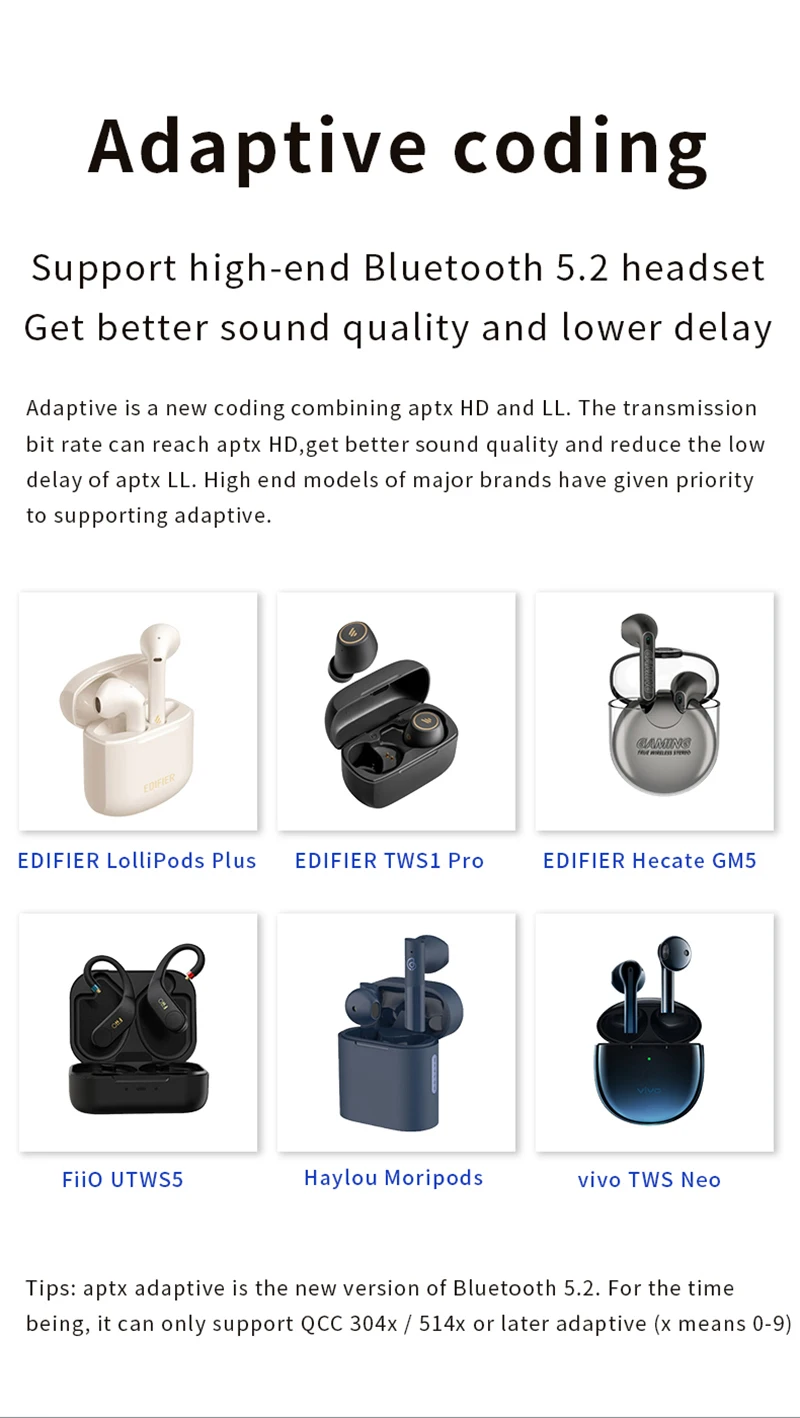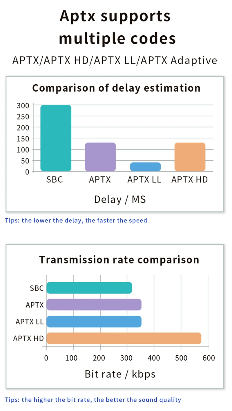 ----- Soporte APTX HD/LL/adaptativo; SBC, ACC;