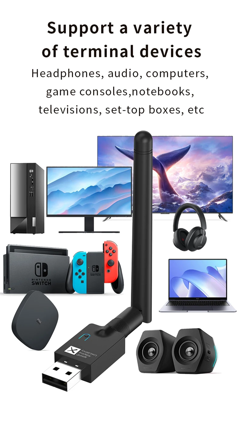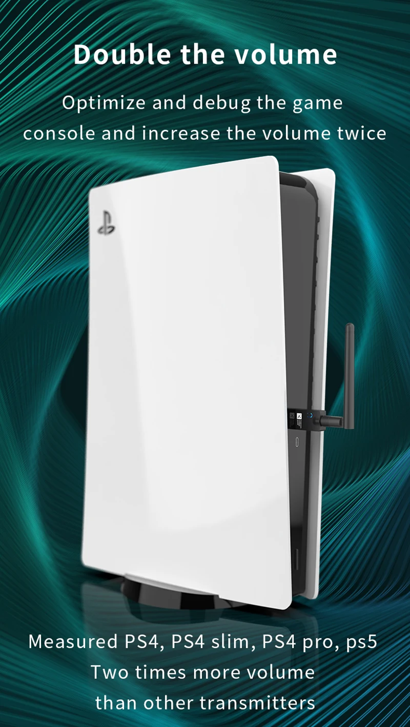 Dispositivos compatibles: adecuado para TV, ordenador, proyector/amplificador de potencia/TV Box/auriculares Bluetooth/altavoz Bluetooth/consola de juegos Nintendo Switch/PS4/PS4 SLIM/PS4 Pro/PS5;