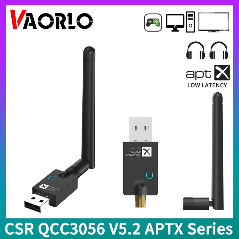 Comprar VAORLO-transmisor de Audio QCC3056 CSR, Bluetooth 5,2, aptX LL HD adaptable, 40ms, baja latencia, multipunto con micrófono, adaptador inalámbrico para TV