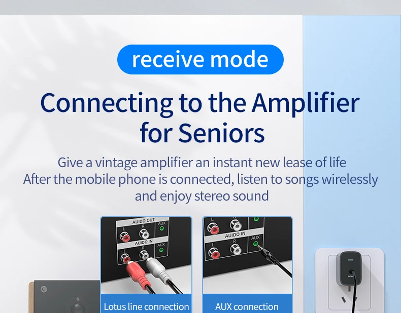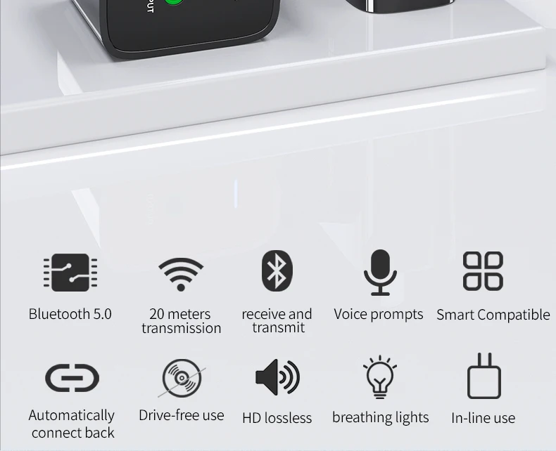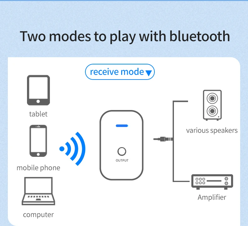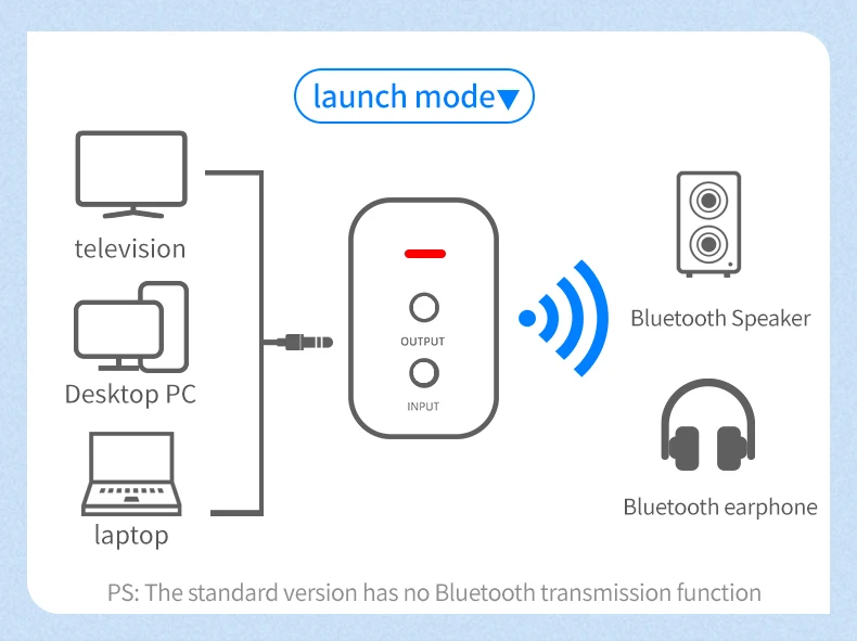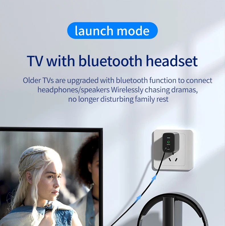 ◆ Modo transmisor para: TV/PC/proyector/amplificador de potencia/caja de la TV/Bluetooth auriculares/altavoz ect.