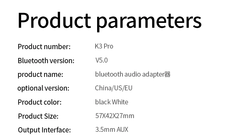 Nombre del producto: K3Pro 2-en-1 Bluetooth 5,0 transmisor receptor