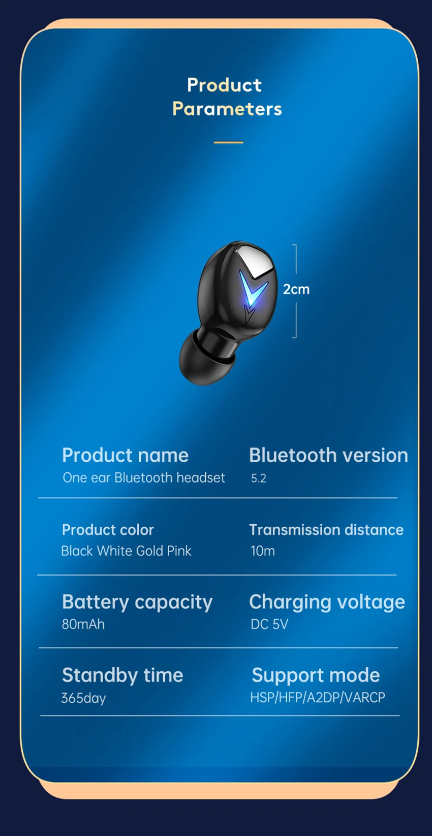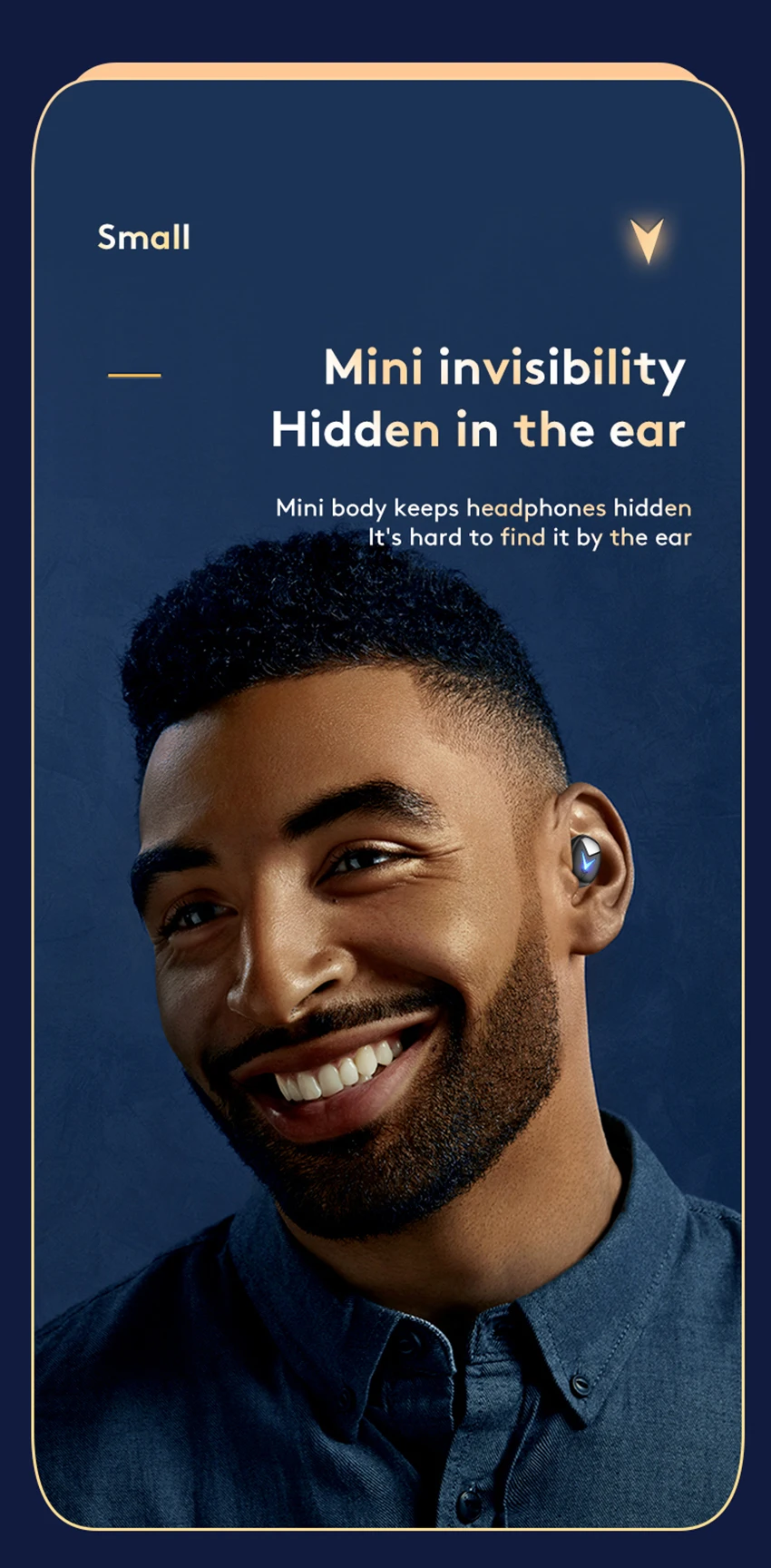 Tamaño súper mini y oculto en la oreja, sin carga de uso.